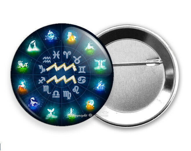 AQUARIUS ZODIAC HOROSCOPE LUCKY ASTROLOGY SIGN SYMBOL HD PIN PINBACK BUTTON GIFT