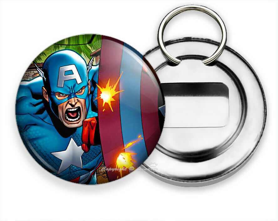 CAPTAIN AMERICA FIRST AVENGER SUPERHERO SHIELD BEER SODA BOTTLE OPENER KEY RING