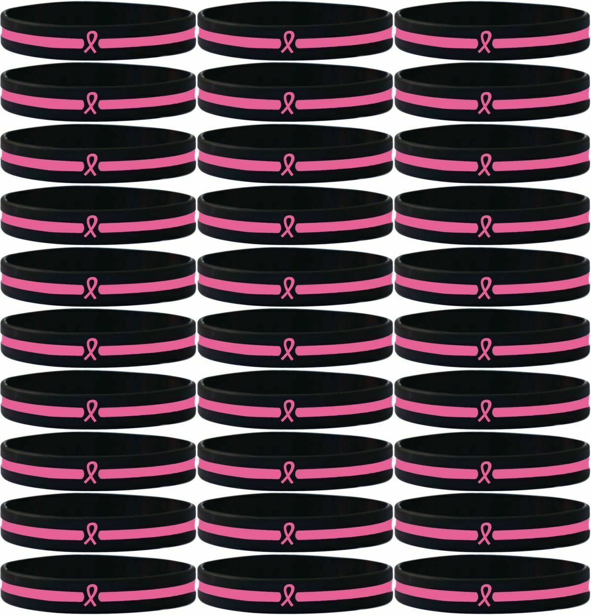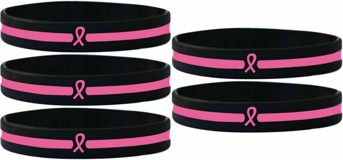 50 Pink Ribbon Wristbands featuring The Thin PINK Line - New Debossed Bracelets
