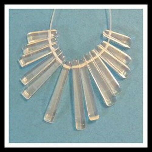 This item is a 13 piece Clear Glass Mini Collar (a.k.a Egyptian Fan, Tab Set or Bib) temporarily strung on monofilament line.