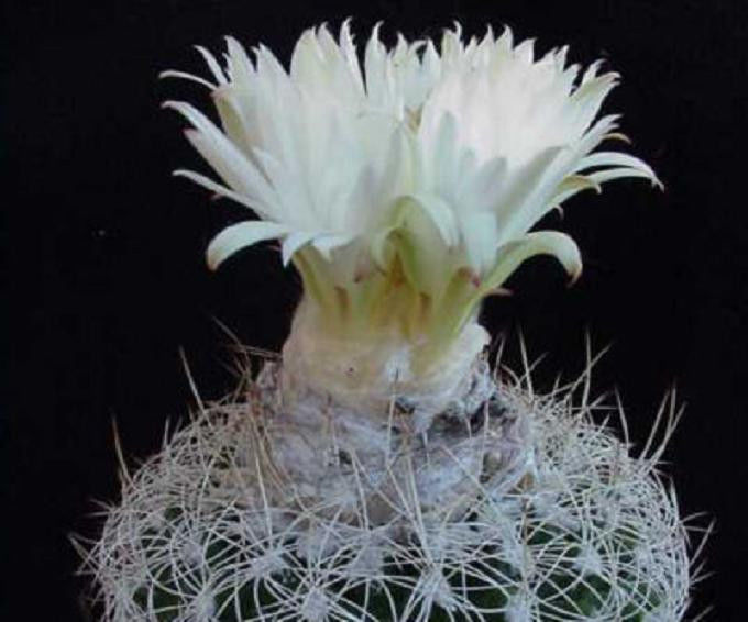 terminal cephalium out of which rise the white flowers on the end of a