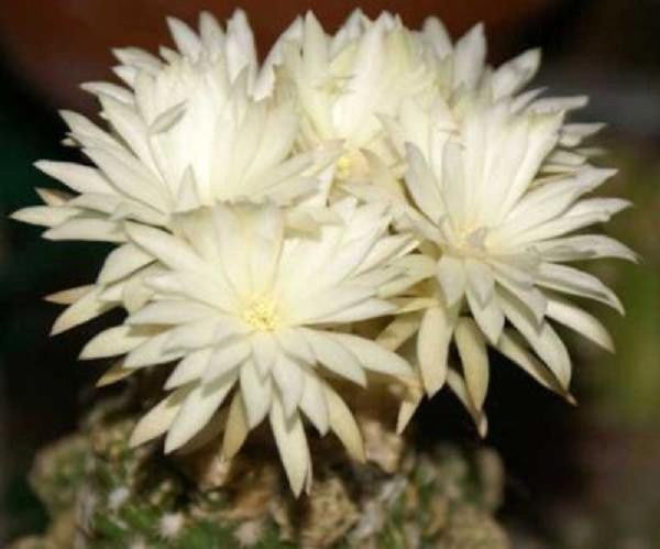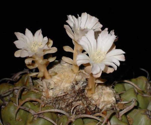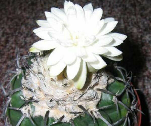 The genus Discocactus is highly prized by collectors around the globe. Exactly what it is that makes them so attractive is uncertain. Some of the factors are likely their relatively compact size, unique and showy white flowers, and their slow growth. The species within this genus are flattened to globose in shape with stems that hardly exceed 3 inches (7.5cm) in height and are less than 10 inches (26 cm) in diameter. Stems are ribbed and sometimes tuberculate with fuzzy areoles or dense spines. Most plants remain single, but may form clumps. Flowering plants form a wooly terminal cephalium out of which rise the white flowers on the end of a long, thin floral tube. The nocturnal flowers are highly fragrant and touted by many growers as the best smelling of all cactus flowers