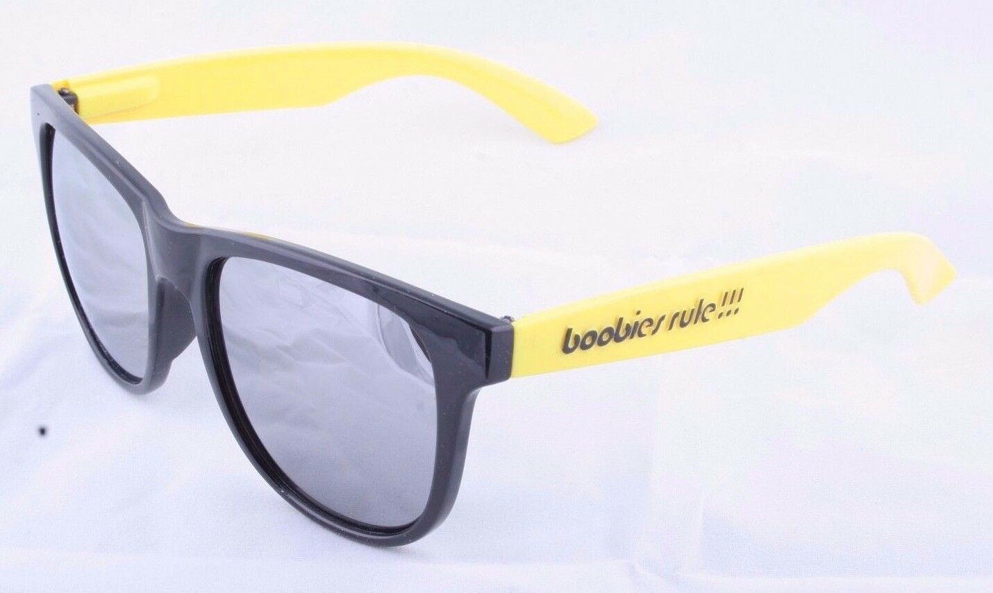 Boobies Rule!!! Black & Yellow Mango White Sunglasses w Mirrored Lens Boobs Tits