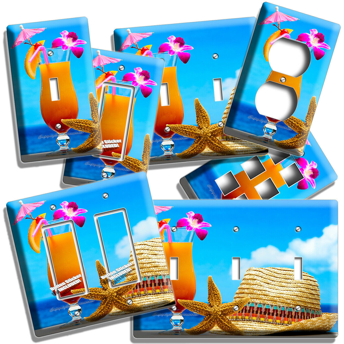 TROPICAL DRINK STARFISH HAT LIGHT SWITCH OUTLET PLATE BEACH HOUSE BATHROOM DECOR