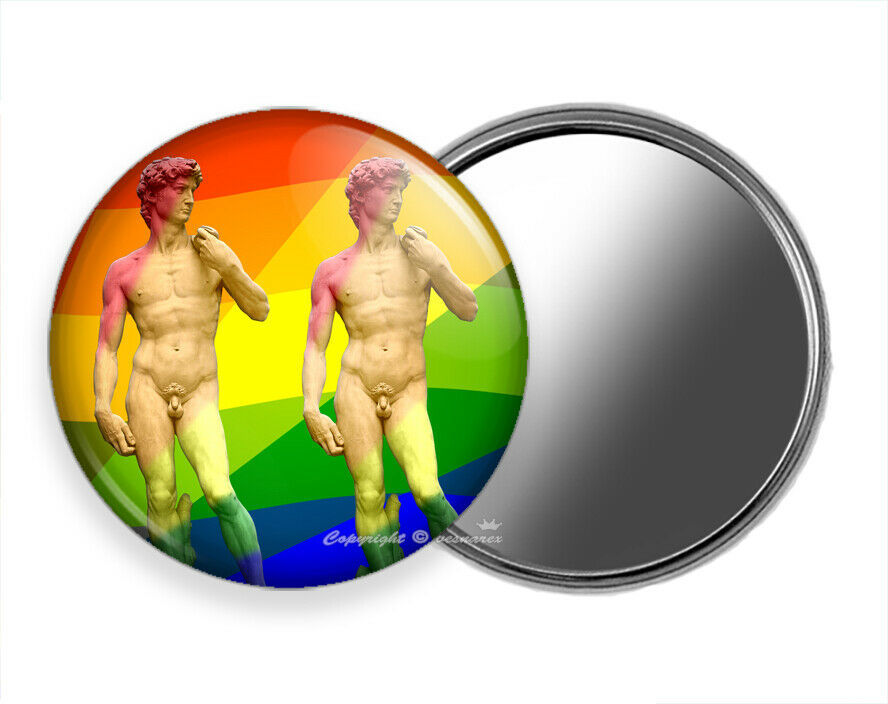 MICHELANGELO DAVID GAY PRIDE HAPPY RAINBOW HD PURSE MAKEUP HAND MIRROR GIFT IDEA