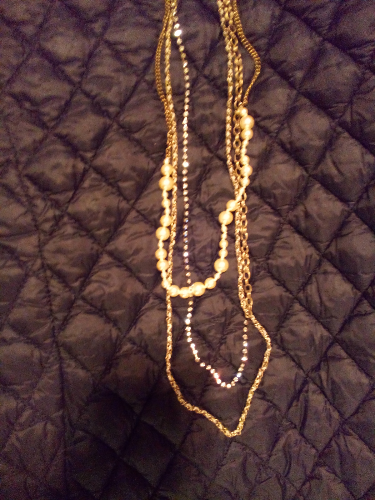 J Crew 3 Strand Necklace , Chains , Pearls , Rhinestones
