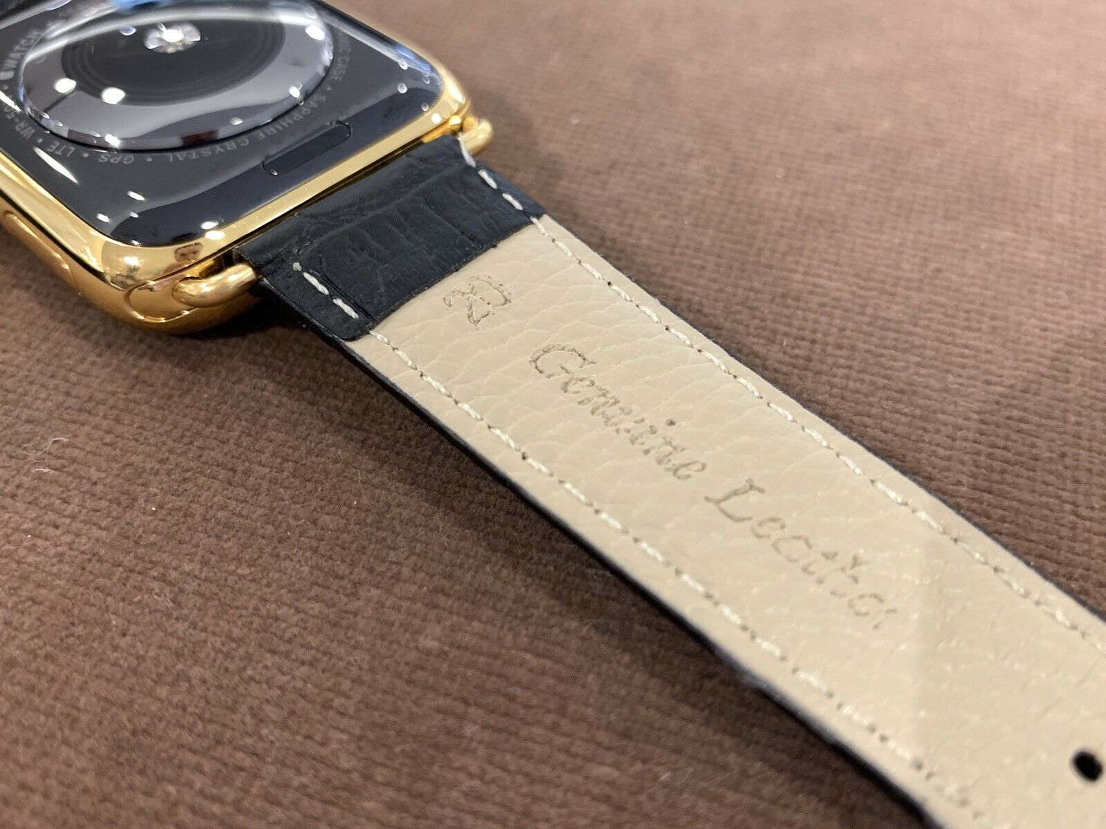 Custom 44mm Apple Watch Series 5 24K Gold Plated Stainless Steel Black Leather B added to cart.