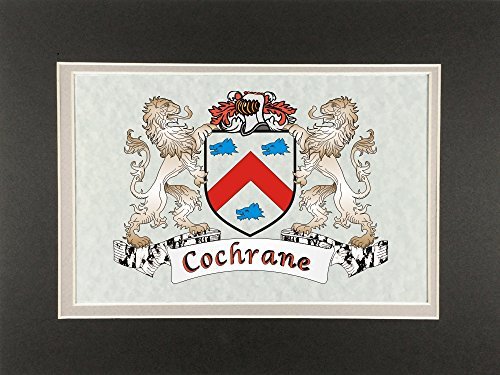 Cochrane Irish Coat of Arms Print - Frameable 9" x 12" Authentic Irish coat of arms frameable 9" x 12" inch print. Four piece set includes a high-quality print of your Irish family coat of arms on a heavy 65lb cover weight parchment paper, heavy all-black backing board, and TWO separate matboards. Fits any standard 9" x 12" frame. Authentic Irish coat of arms printPrinted from high quality Vector art filesHeavy duty all-black backing boardNo mounting necessaryTwo separate matboards (inside color: clay, outside color: dark olive)9" x 12" frameable sizeShrink wrapped for deliveryChoose from over 1200 available Irish coat of arms.
