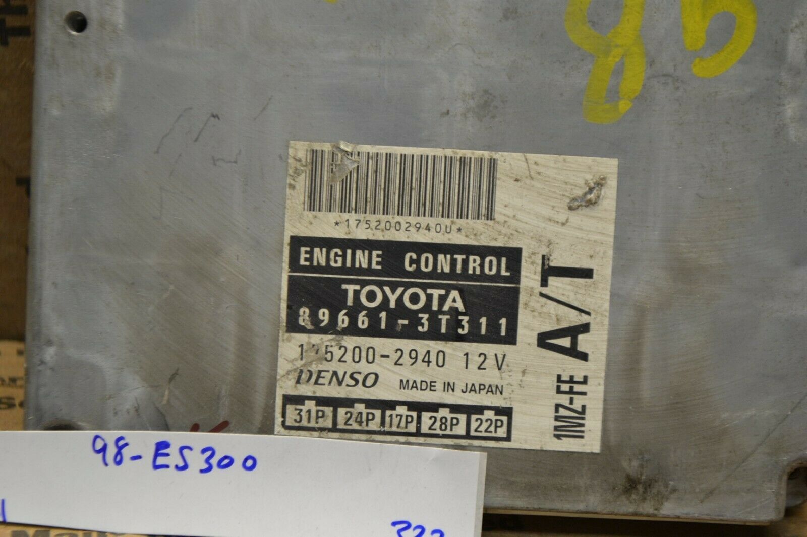 LEXUS ES300 98 Elec Cont Unit (ECU); (by glove box), Fed, w/o trac cont
