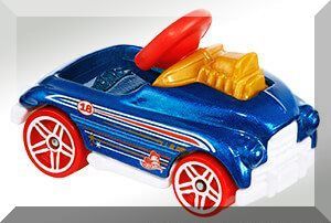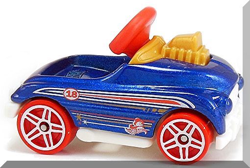 Description: Mtlflk Blue, w/White interior, No windows, Gold, Red and White stripe graphics w/’18’ and a Holiday Hot Rods logo on sides, Red steering wheel, Goldenrod engine, White Indonesia Base, w/WhtPR5’s. 112919-112919P-D40