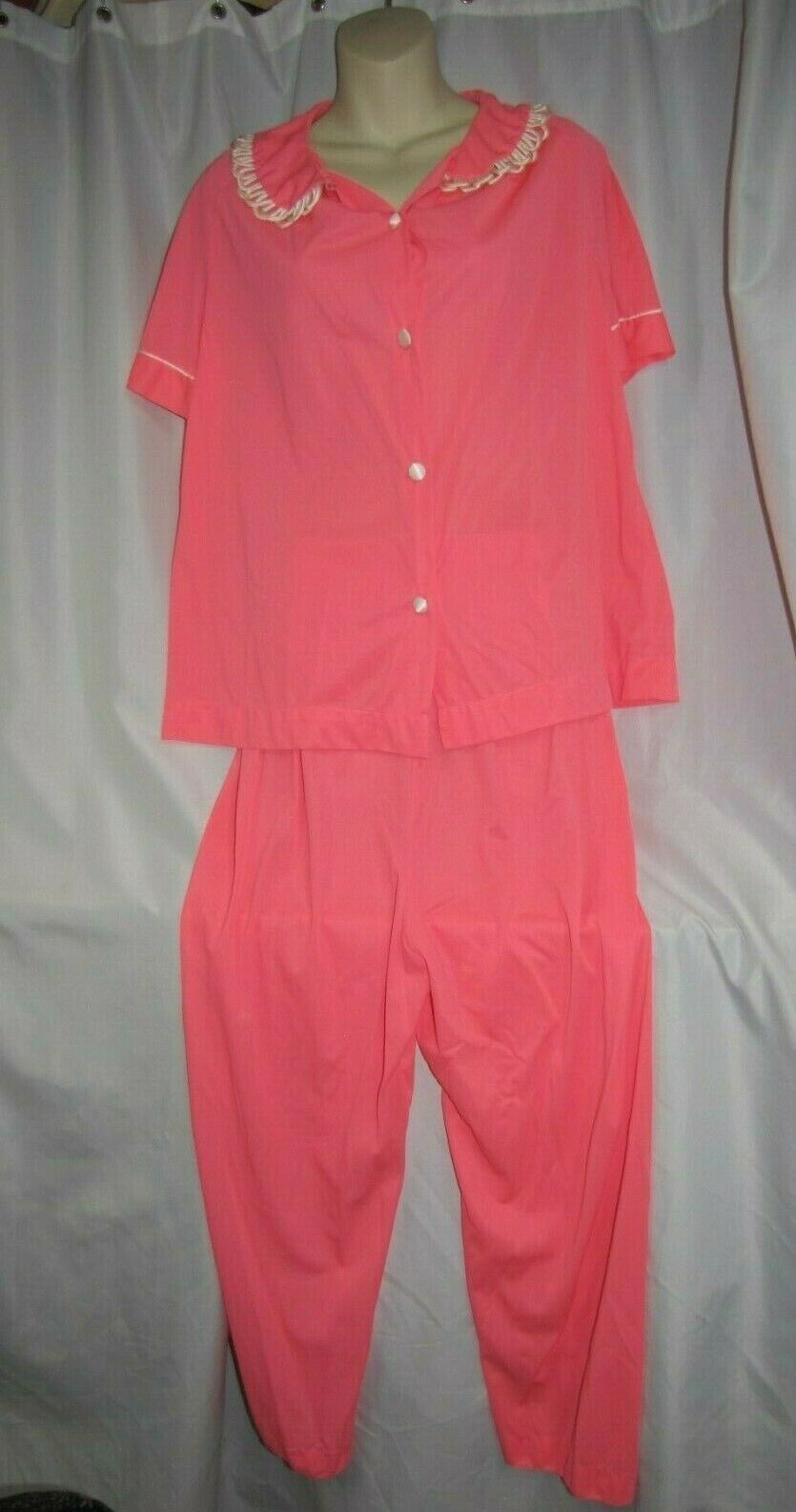 Vtg 50s 60s Gossard Artemis Pajamas Set sz 38 2pc Shirt Pants Nylon Pink-Peach