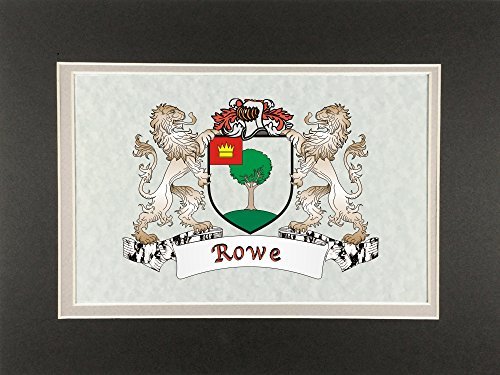 Rowe Irish Coat of Arms Print - Frameable 9" x 12" Authentic Irish coat of arms frameable 9" x 12" inch print. Four piece set includes a high-quality print of your Irish family coat of arms on a heavy 65lb cover weight parchment paper, heavy all-black backing board, and TWO separate matboards. Fits any standard 9" x 12" frame. Authentic Irish coat of arms printPrinted from high quality Vector art filesHeavy duty all-black backing boardNo mounting necessaryTwo separate matboards (inside color: clay, outside color: dark olive)9" x 12" frameable sizeShrink wrapped for deliveryChoose from over 1200 available Irish coat of arms.