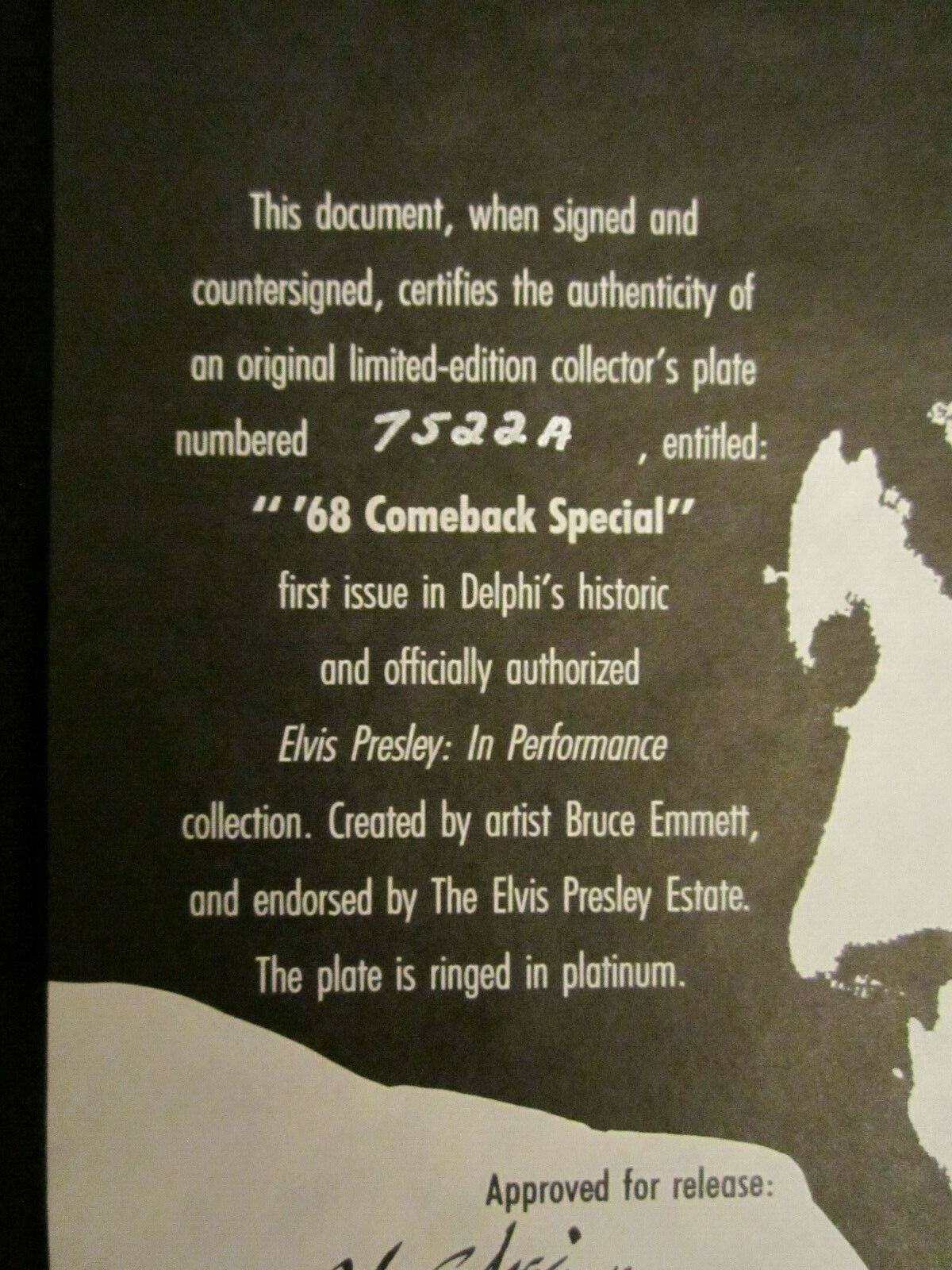 "68 COMEBACK SPECIAL collector plate ELVIS PRESLEY IN PERFORMANCE Bruce Emmett