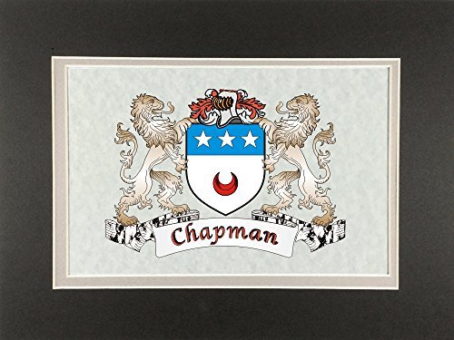 Chapman Irish Coat of Arms Print - Frameable 9" x 12" Authentic Irish coat of arms frameable 9" x 12" inch print. Four piece set includes a high-quality print of your Irish family coat of arms on a heavy 65lb cover weight parchment paper, heavy all-black backing board, and TWO separate matboards. Fits any standard 9" x 12" frame. Authentic Irish coat of arms printPrinted from high quality Vector art filesHeavy duty all-black backing boardNo mounting necessaryTwo separate matboards (inside color: clay, outside color: dark olive)9" x 12" frameable sizeShrink wrapped for deliveryChoose from over 1200 available Irish coat of arms.