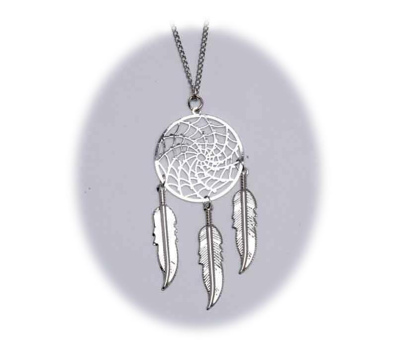 18 INCH METAL DREAM CATCHER SILVER NECKLACE WITH FEATHERS dream catcher jl666