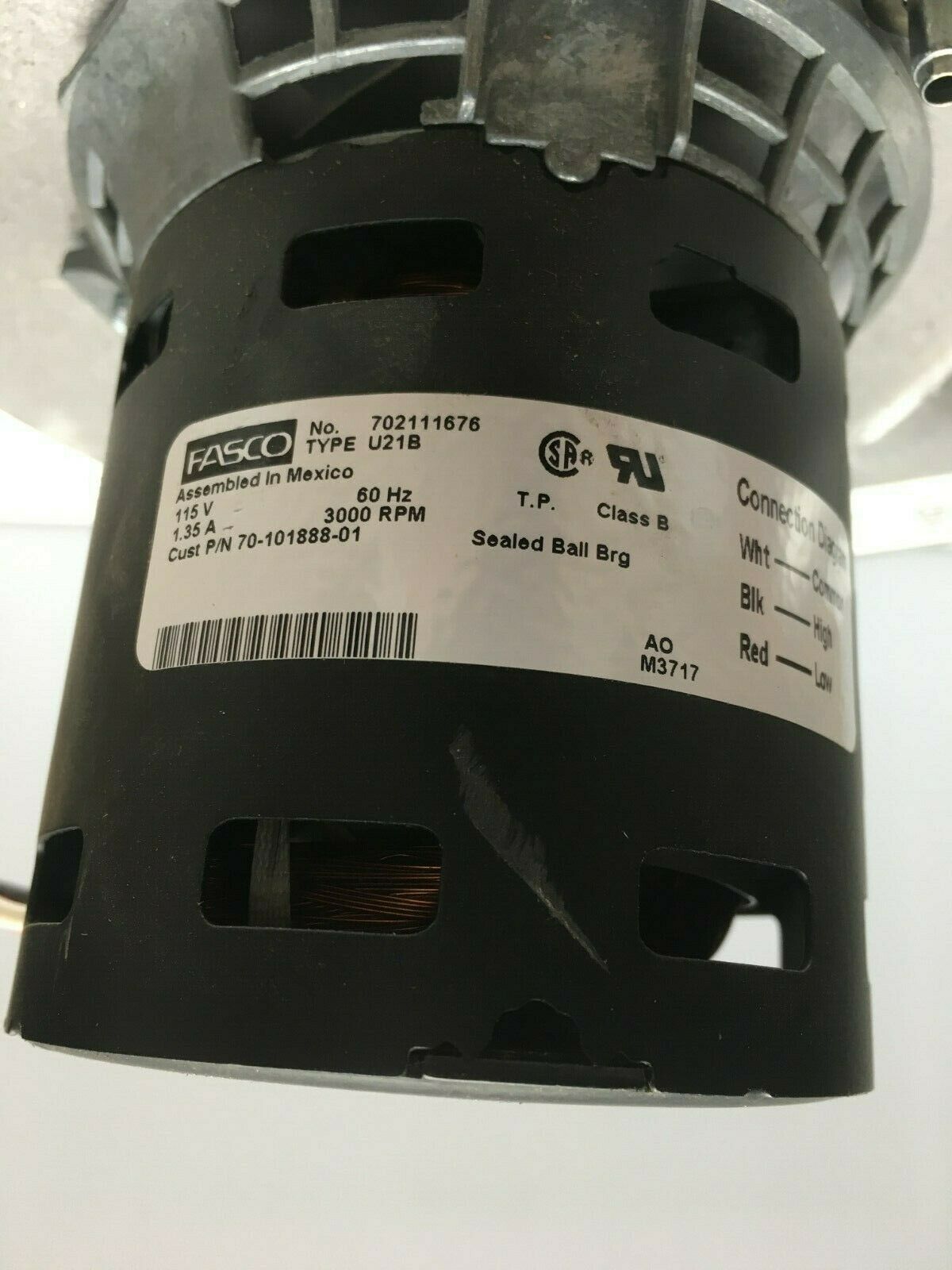 This is FASCO 702111676 Draft Inducer Blower Motor Assembly 70-101888-01 115V 3000RPM used part.