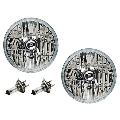 THIS LISTING IS FOR A NEW PAIR (2 bulbs) OF 7" ROUND 6 VOLT HIGH/LOW BEAM CRYSTAL CLEAR H4 CONVERSION HALOGEN HEADLIGHTS. INCLUDES HALOGEN BULBS 6-VOLT 55W LOW BEAM / 60W HIGH BEAM. THESE ARE GLASS FACED / METAL BACKED HEADLIGHTS. THESE ARE VERY NICE AND WORK GREAT! THESE HEADLIGHTS HAVE A DOMED CLEAR GLASS FACE UNLIKE ALL ALL THE OTHERS ON THE MARKET THAT HAVE A FLAT PLASTIC FACE. THESE LIGHT UP 50% BRIGHTER THAN THE STANDARD STOCK STYLE INCANDESCENT HEADLIGHT BULBS. THESE HAVE THE ORIGINAL 3 PRONG PLUG DESIGN ON THE BACK SO THEY WILL PLUG RIGHT INTO THE ORIGINAL WIRING HARNESS (NO WIRING MODIFICATION NEEDED). THESE ALSO FIT DIRECTLY INTO THE STOCK BUCKETS WITH NO MODIFICATION NEEDED. DIRECT PLUG AND PLAY REPLACEMENT. THESE WILL FIT ANY CAR OR TRUCK THAT HAS 2 ROUND GLASS HEADLIGHTS THAT ARE 7 INCHES IN DIAMETER. THESE ARE GLASS AND WE WILL TAKE EXTRA CARE IN PACKAGING. SAE DOT APPROVED.