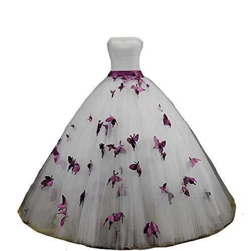 Plus Size Ball Gown Butterfly Long Prom Wedding Dresses 16W Ivory and Dark Plum