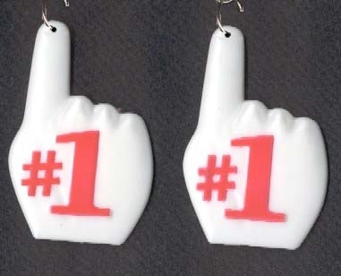 Big #1 BIG FINGER EARRINGS - Sports Dangle CHEERLEADER Collectible Jewelry - RED Dimensional Plastic Charm, looks like the foam finger at sporting events - Approx. 2-inch Tall x 1-1/4-inch Wide. Every Football, Basketball, Baseball, Soccer and Hockey Sports Fans, show your support!