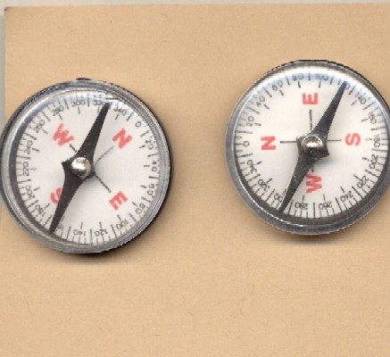 COMPASS BUTTON TOY EARRINGS - Camping, Boy and Girl Scouts, Hunting, Hiking, Map, Military, Traveler, Teacher, Stud Post Costume Jewelry. Really Works! Detailed, Plastic Charm, approx. 1-inch Diameter. Also makes a Great Gift for anyone who has no sense of direction!