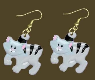 CAT EARRINGS-GRAY TABBY-Pet Kitty Animal Charm Funky Jewelry-BIG
