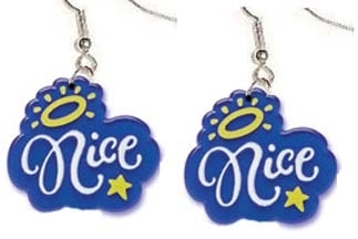 Big Funky NICE EARRINGS - Diva Attitude Pollyanna Angel Good Girl Charm Costume Jewelry - HUGE Goody Two Shoes, Jewel-tone transparent plastic charms, approx. 1-1/2-inch diameter. Are you Naughty or NICE???