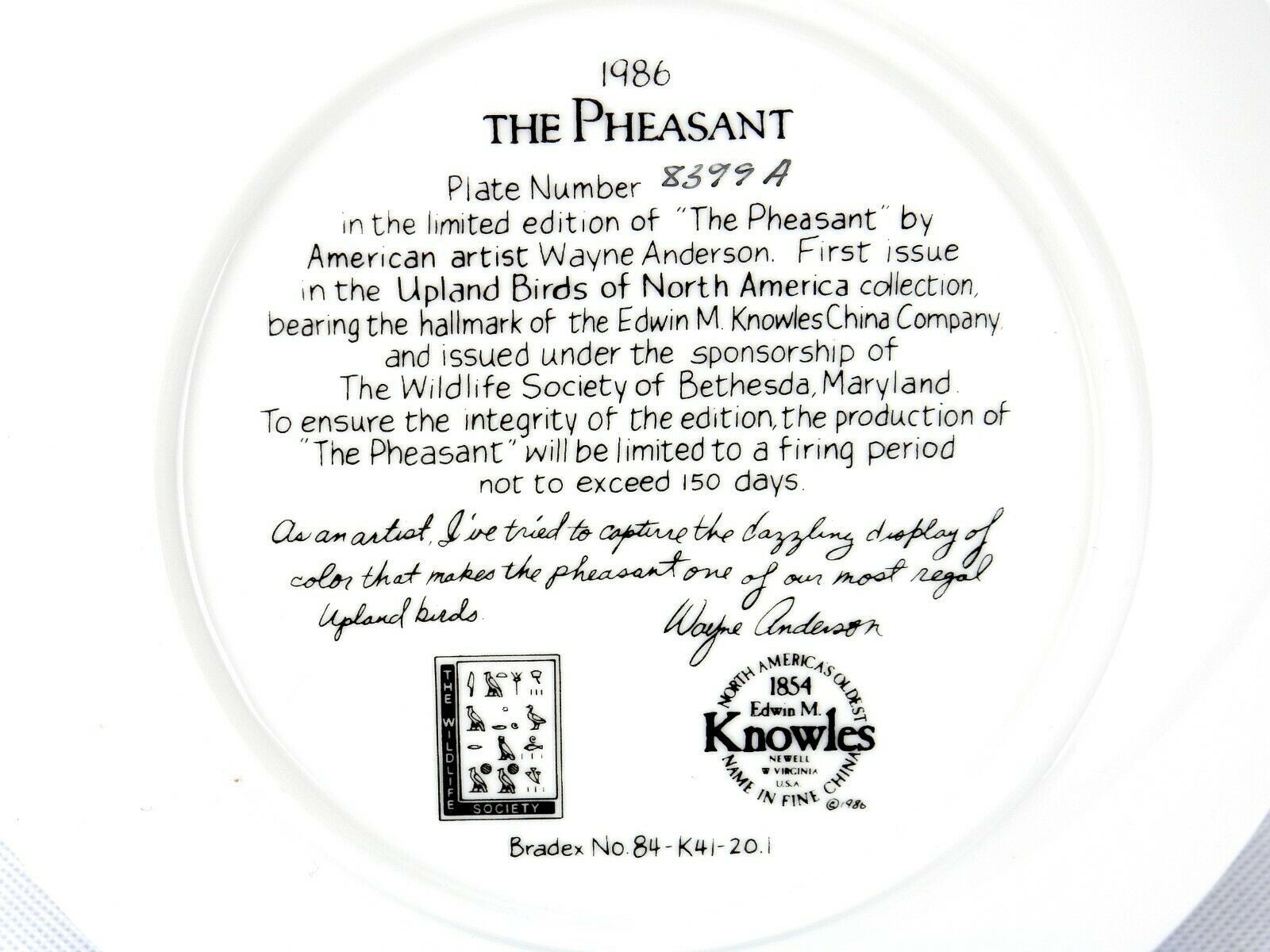 Wayne Anderson Collector Plate, "The Pheasant" Upland Birds of N. America #8399A