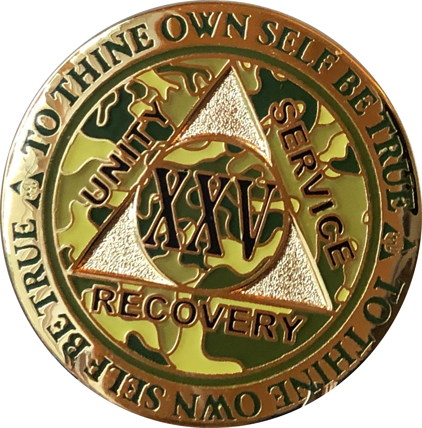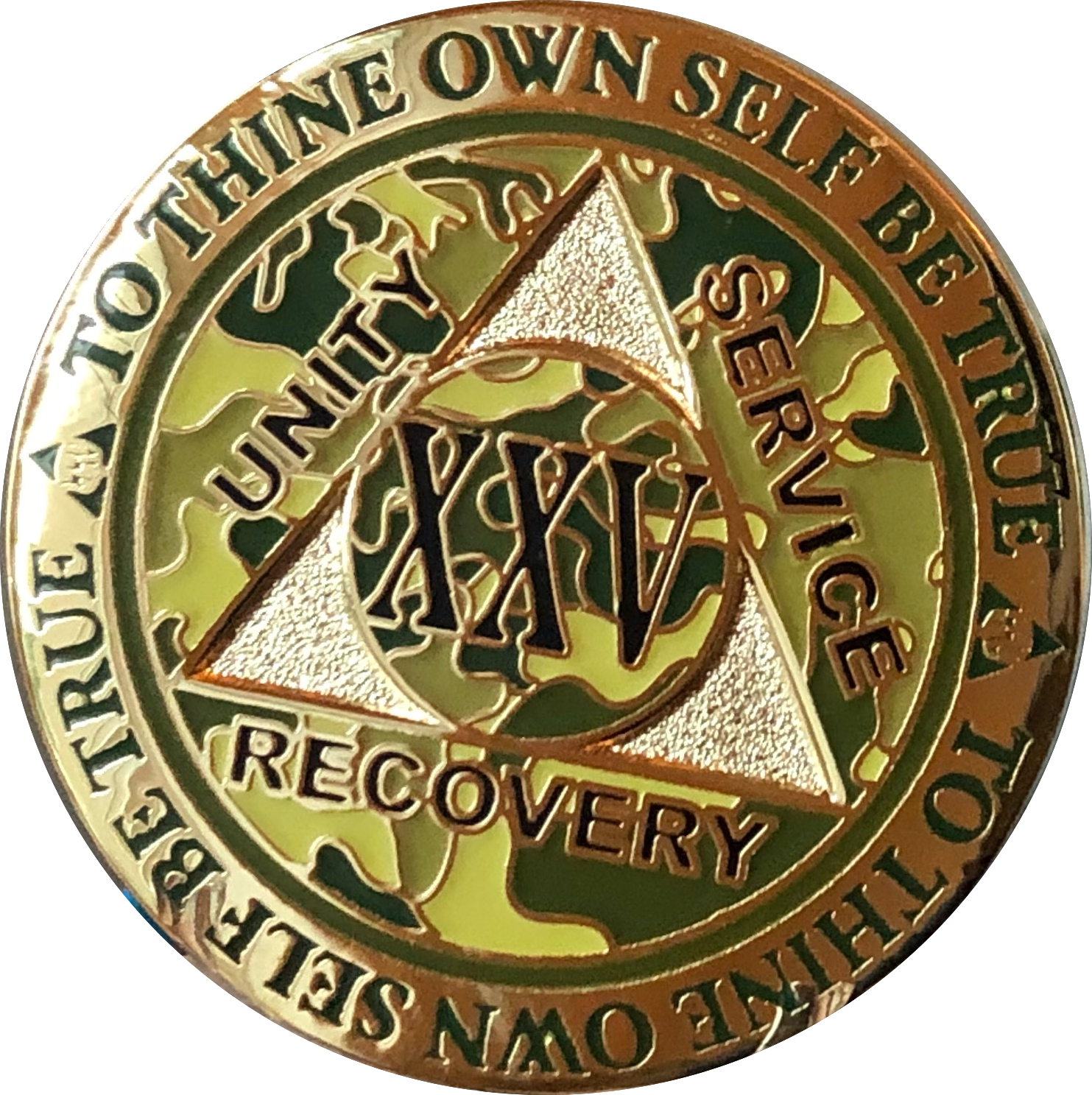 Camo and Gold Plated Twenty Five Year Sobriety Coin
