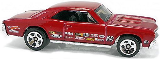 Description: Mtlflk Brick Red, w/Black interior, Clear windows, Various racing decals along lower sides w/White ‘Hot Wheels’ logo on rear fender, Chrome Malaysia Base, w/Chr5SP’s. 122619-122619P-D41