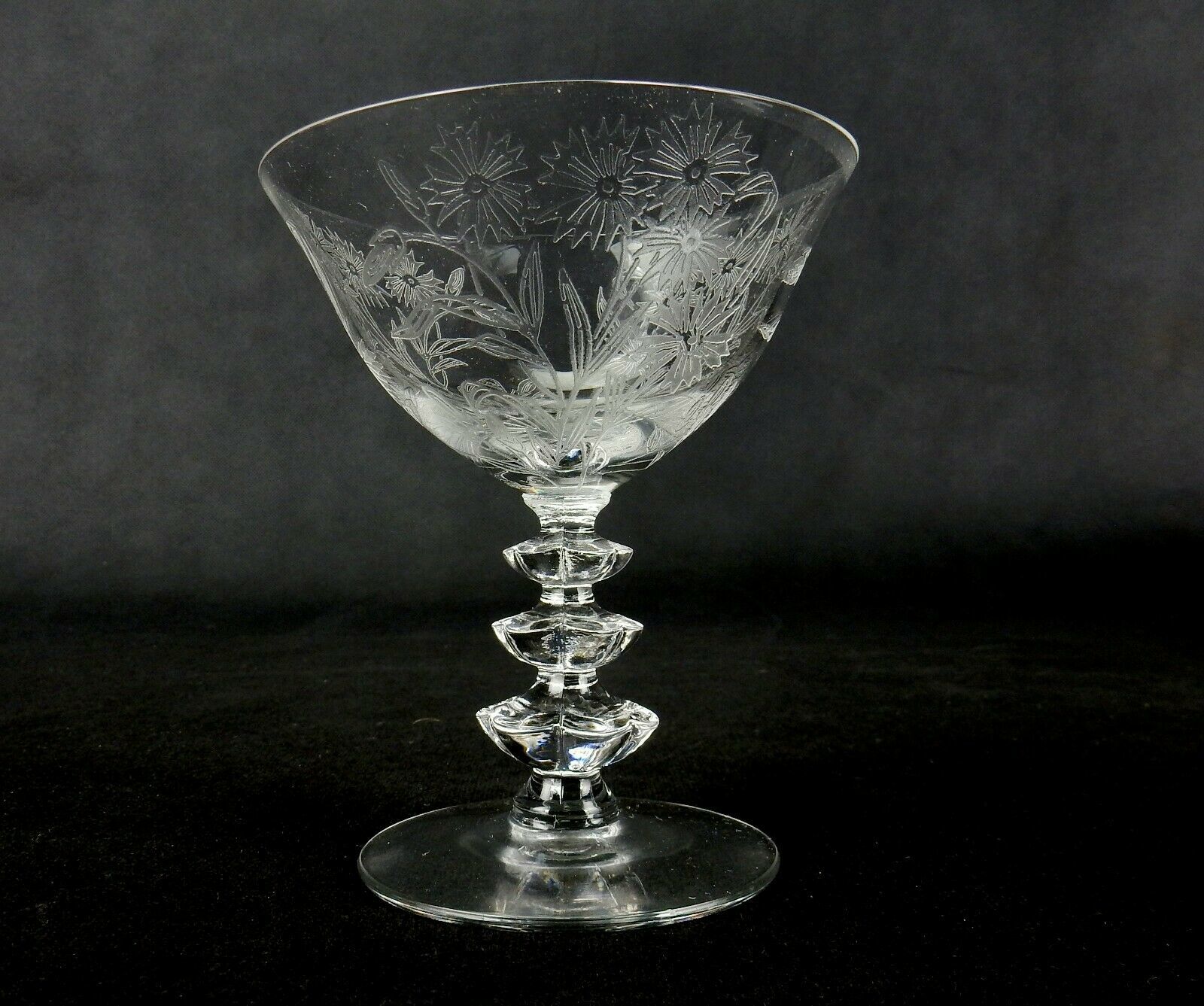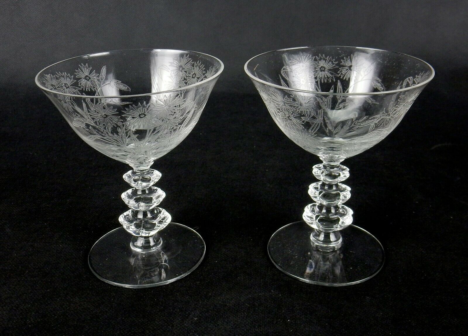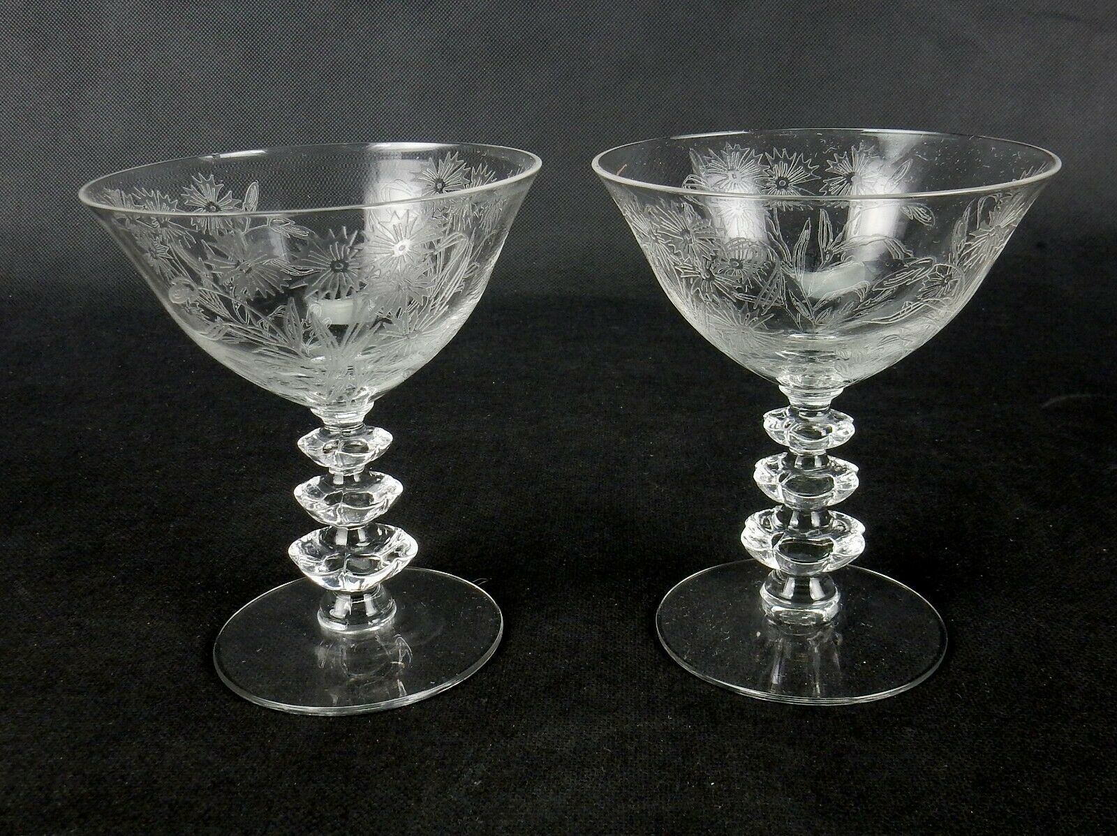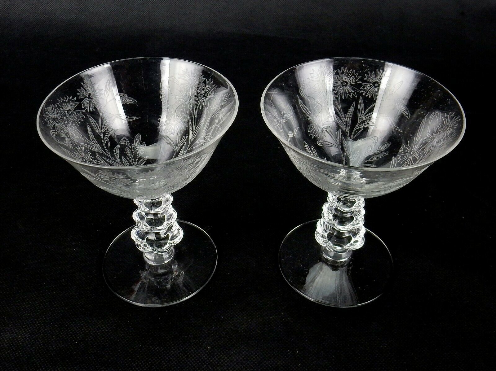 Vintage Duncan & Miller Tall Sherbet / Champagne Glass #5317 Floral Etched Pair