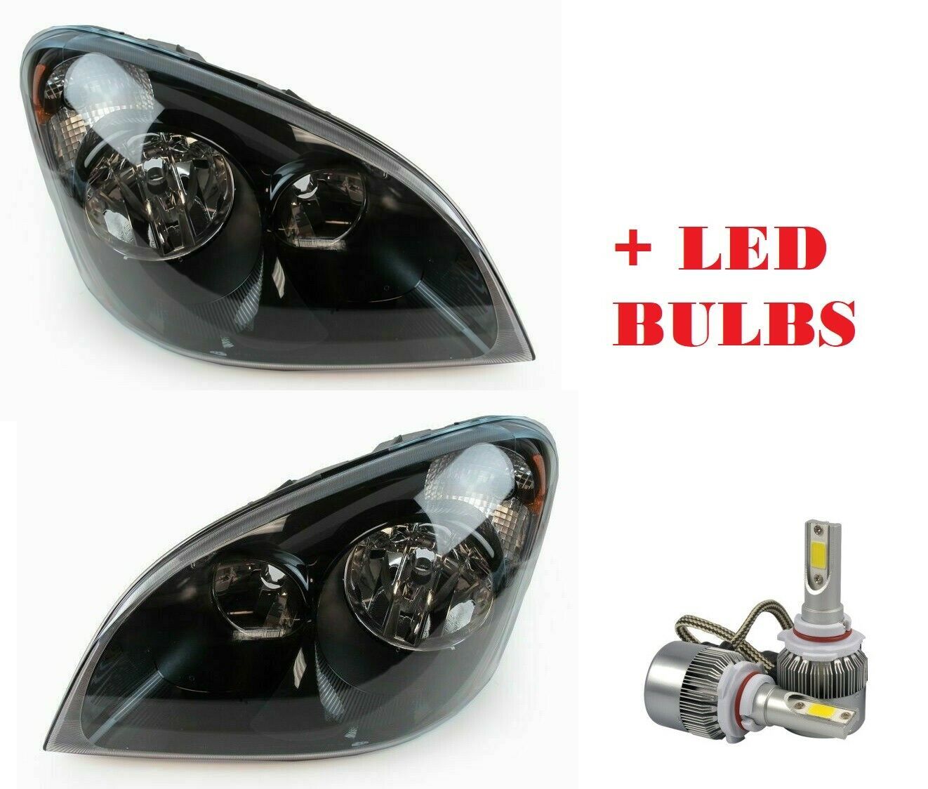 FREIGHTLINER CASCADIA 2008 2009 2010 2011 BLACK HEADLIGHTS HEAD LAMP + LED BULBS