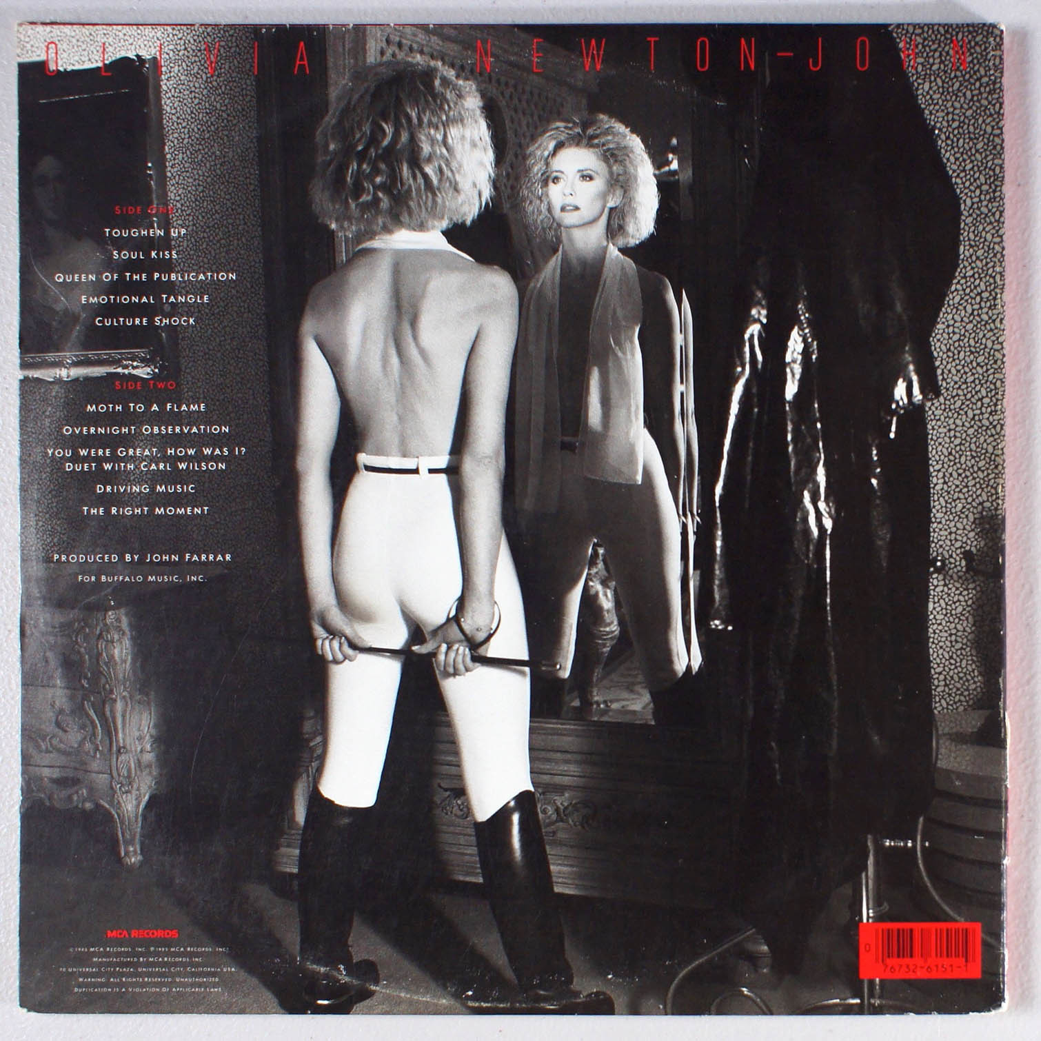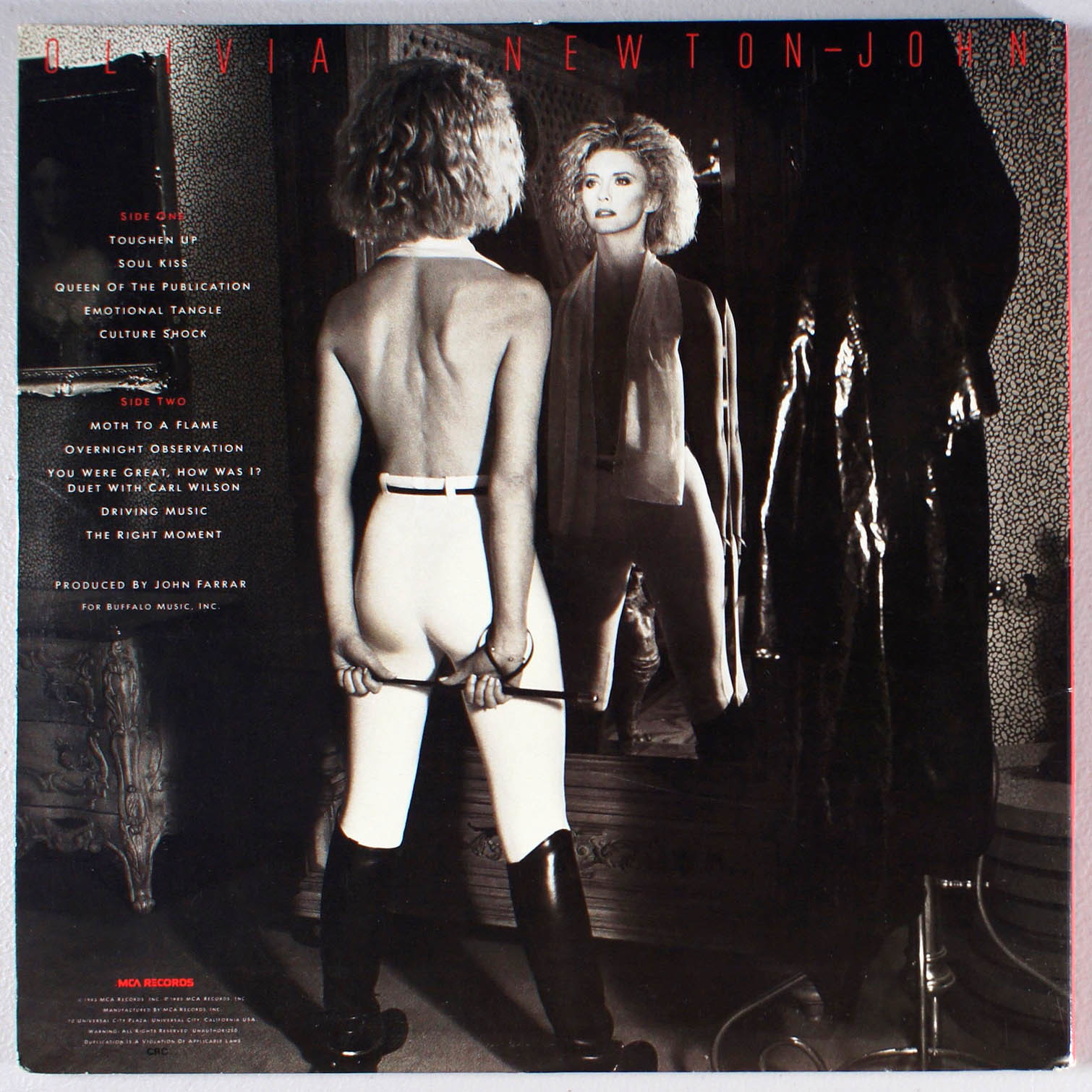 Soul Kiss peaked at No. 29 on the Billboard 200 and was certified Gold in the U.S. The album's title song reached No. 20 on the Billboard Hot 100 and Adult Contemporary charts. Olivia Newton-John also released a home-video companion to the album featuring music videos. Toughen Up opens the album with power. Soul Kiss, the title track, is a good, dark, moody song written by Mark Goldenberg, who also plays synthesizer on it. Producer John Farrar is on Synclavier and guitar, with Newton-John and Katie Sagal (aka Katey Sagal, of Married With Children, LOST and Sons of Anarchy) providing eerie backing vocals. You Were Great, How Was I? is a duet with Carl Wilson, and features he and Christopher Cross providing authentic Beach Boys harmonies and features the saxes of Tom Scott, the synths of Newton-John songwriter Tom Snow, and superb support from Lee Ritenour and the late Carlos Vega.