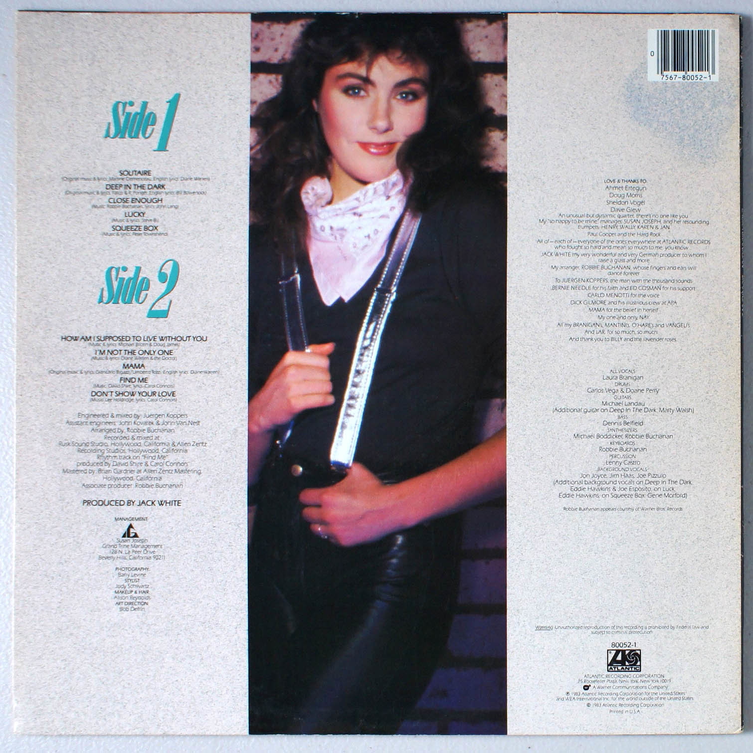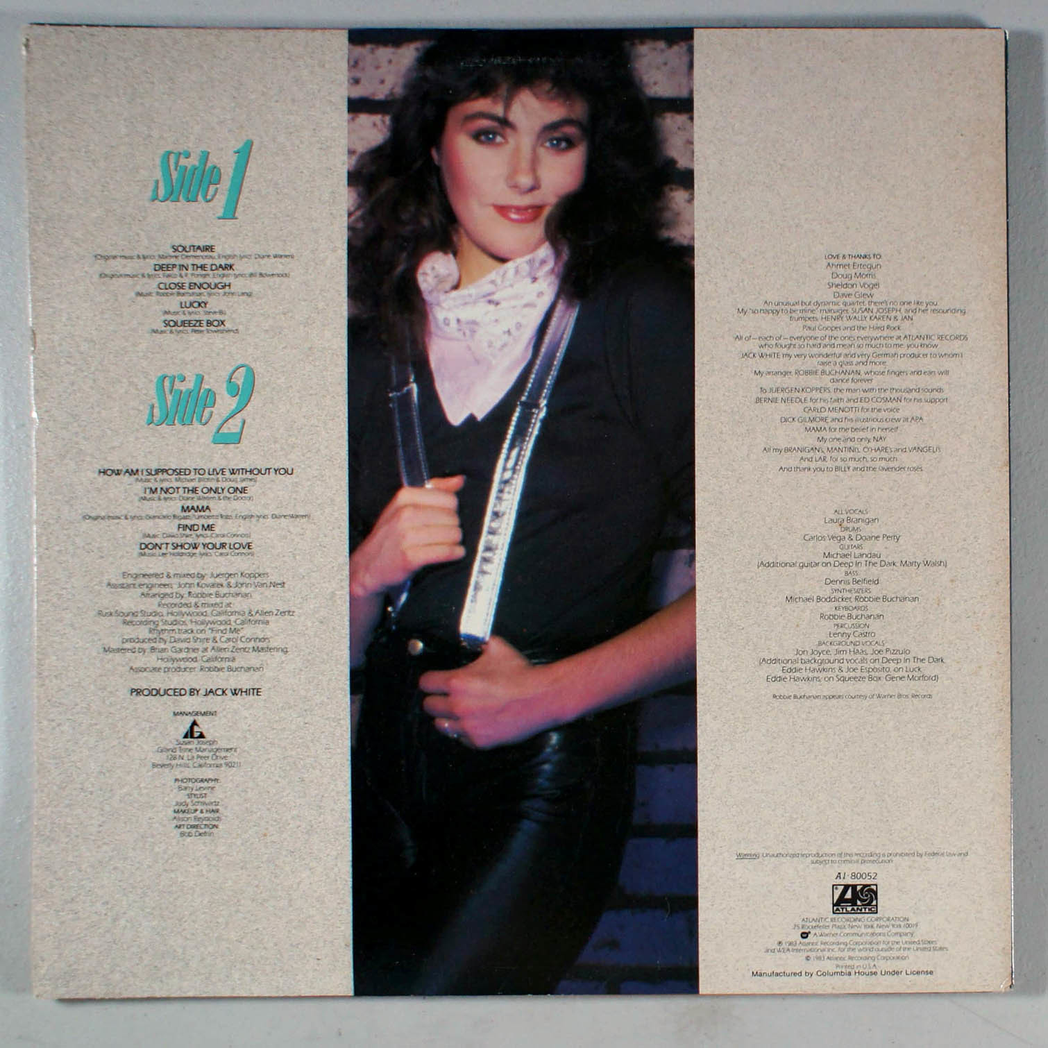 Branigan 2 performed even better on the charts than Laura Branigan's first album in the U.S. In addition to establishing Branigan as more than a one-hit wonder after the major success of Gloria, this album's two big hits began the careers for two then-unknowns who themselves became industry legends. Solitaire (#7 Hot 100) was the first major hit for lyric writer Diane Warren, who co-wrote many of Branigan's early songs. The second single from Branigan 2 was the ballad How Am I Supposed to Live Without You (#12 Hot 100, #1 A/C), was the first major hit for its co-writer, Michael Bolton. He later wrote three more songs for Branigan. Branigan 2 also includes the ballad Find Me, uptempo tracks I'm Not The Only One and Don't Show Your Love, and a cover of The Who's Squeeze Box. The album was certified Gold in the US.