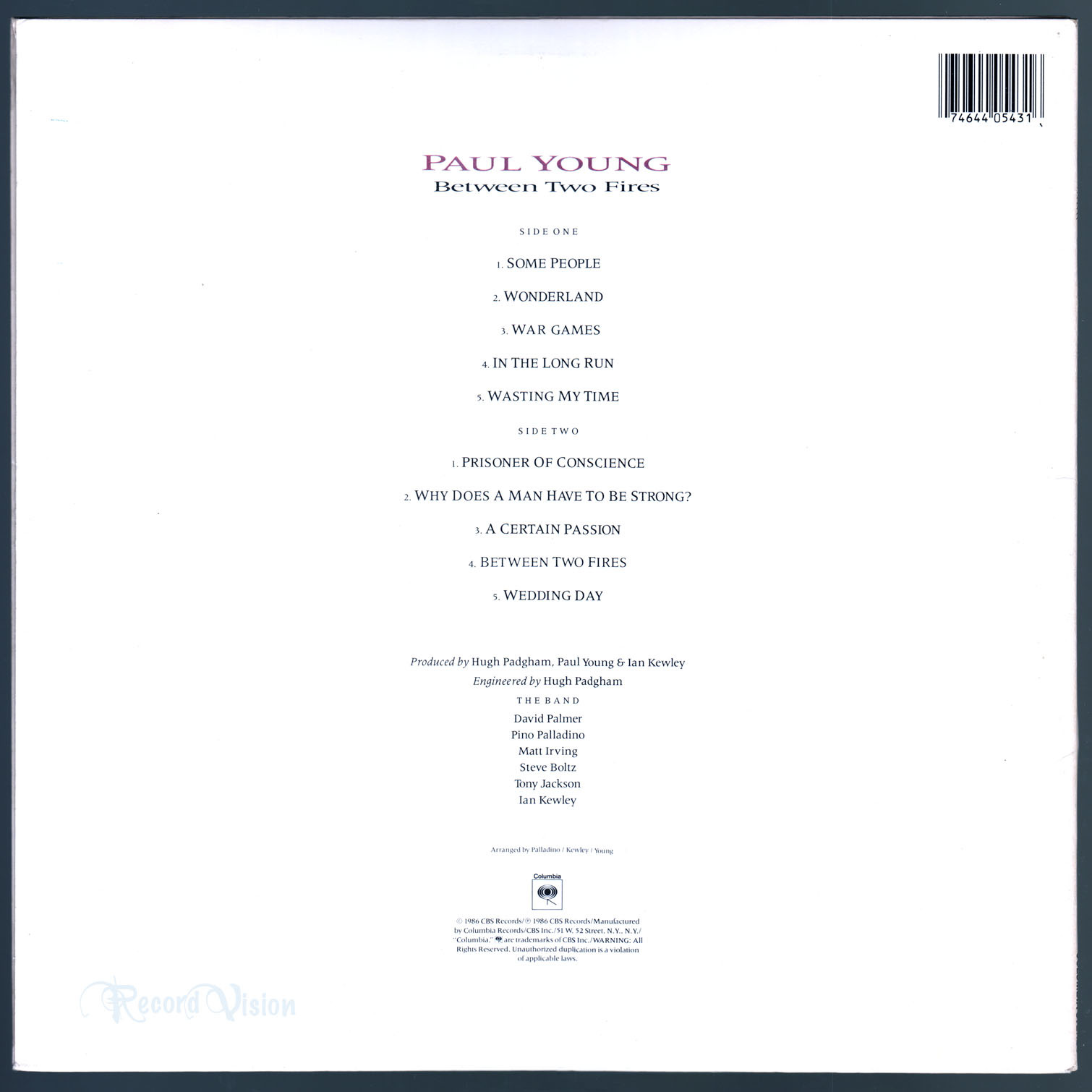 Paul Young - Between Two Fires (1986) Vinyl •PLAY-GRADED• Some People