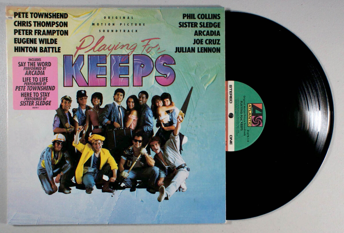 Playing For Keeps is the soundtrack album from the film of the same name. THe album features music by a decidedly high-profile roster: Phil Collins, Peter Frampton, Pete Townshend, and Duran Duran splinter-group Arcadia. A music video for one of the tracks, Sister Sledge's Here to Stay featured players from the Chicago Bears football team along with the band. Several of the tracks in addition to Here to Stay were released as singles and/or became well-known. Pete Townshend's opening track, Life to Life reached No. 39 on the Mainstream Rock charts. Chris Thompson's It's Not Over appeared later the same year, with a slightly longer fade-out, on Thompson's High Cost of Living album and was also released as a single. The tune would be covered by Starship the following year, becoming a Top 10 hit for the group. Music videos were also created for Arcadia's Say the Word and Julian Lennon's live take on Stand by Me. Though not officially released as a single, Phil Collins' We Said Hello, Goodbye (which is actually a remixed version of a B-side for two of Collins' singles from No Jacket Required) received significant radio airplay at the time and became one of his more recognizable tunes. This remixed version is rarely heard today, while the original B-side version is sometimes heard on radio stations.