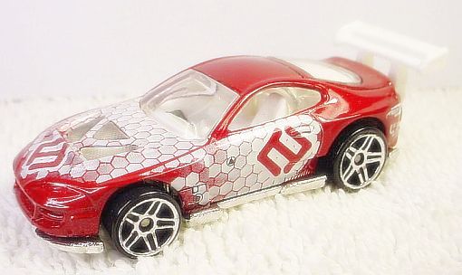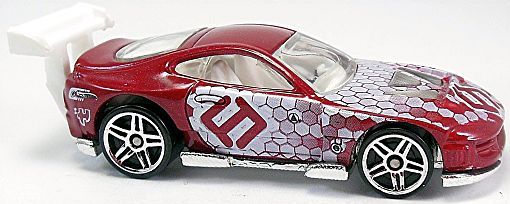 Description: Mtlflk Dark Red, w/White interior, Clear windows, White Pink tampos on sides hood w/’8’; Black ‘Hot Wheels’ logo rear sides; White wing; Chrome Malaysia Base, w/ChrPR5’s. 010520-010520P-D01