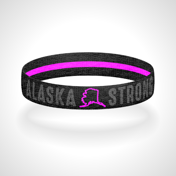 Black Out Thin Pink Line State Strong Reversible Wristband Bracelet. Show your support for cancer awareness with this bracelet.