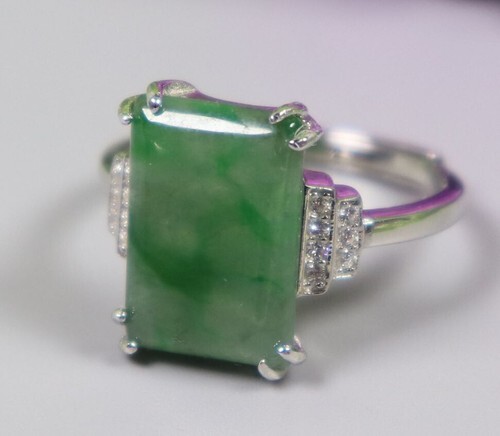 24*10mm Gem/3.25g Cert'd 925S Green Natural A JADE jadeite Adjustable Ring 5540