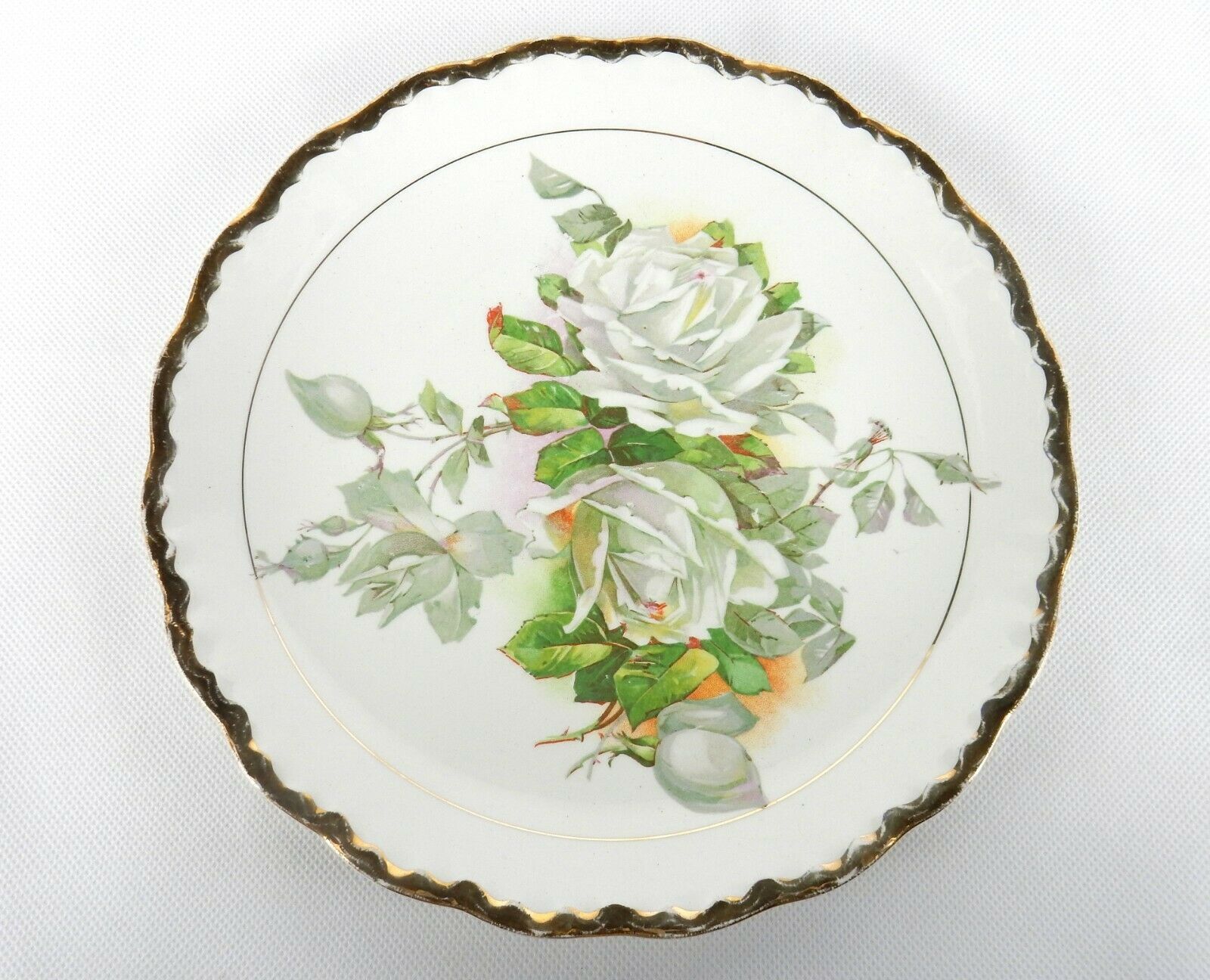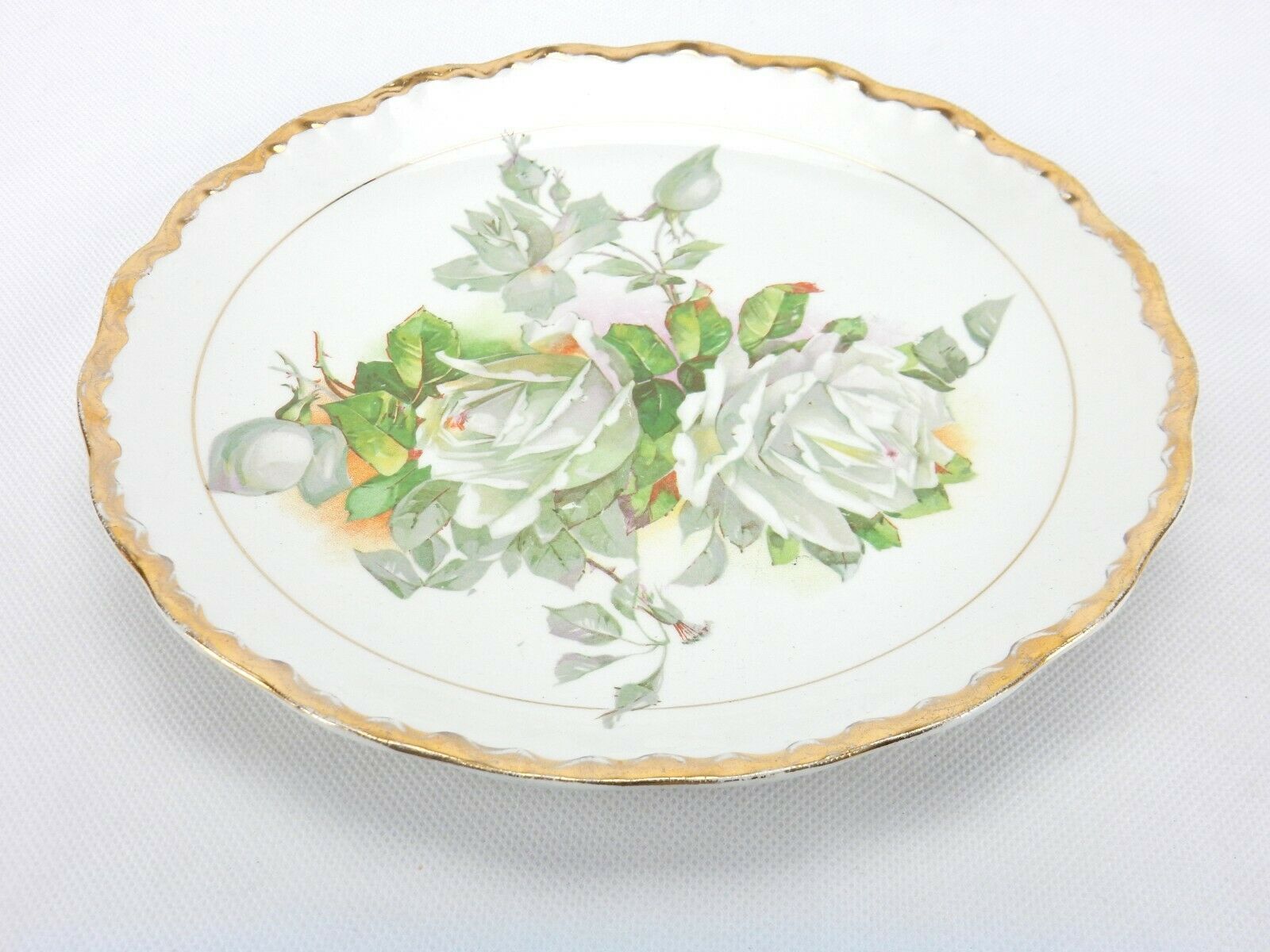 Vintage Collector Plate w/Hanger, White Flowers, Scalloped Gilded Edge, PLT08B
