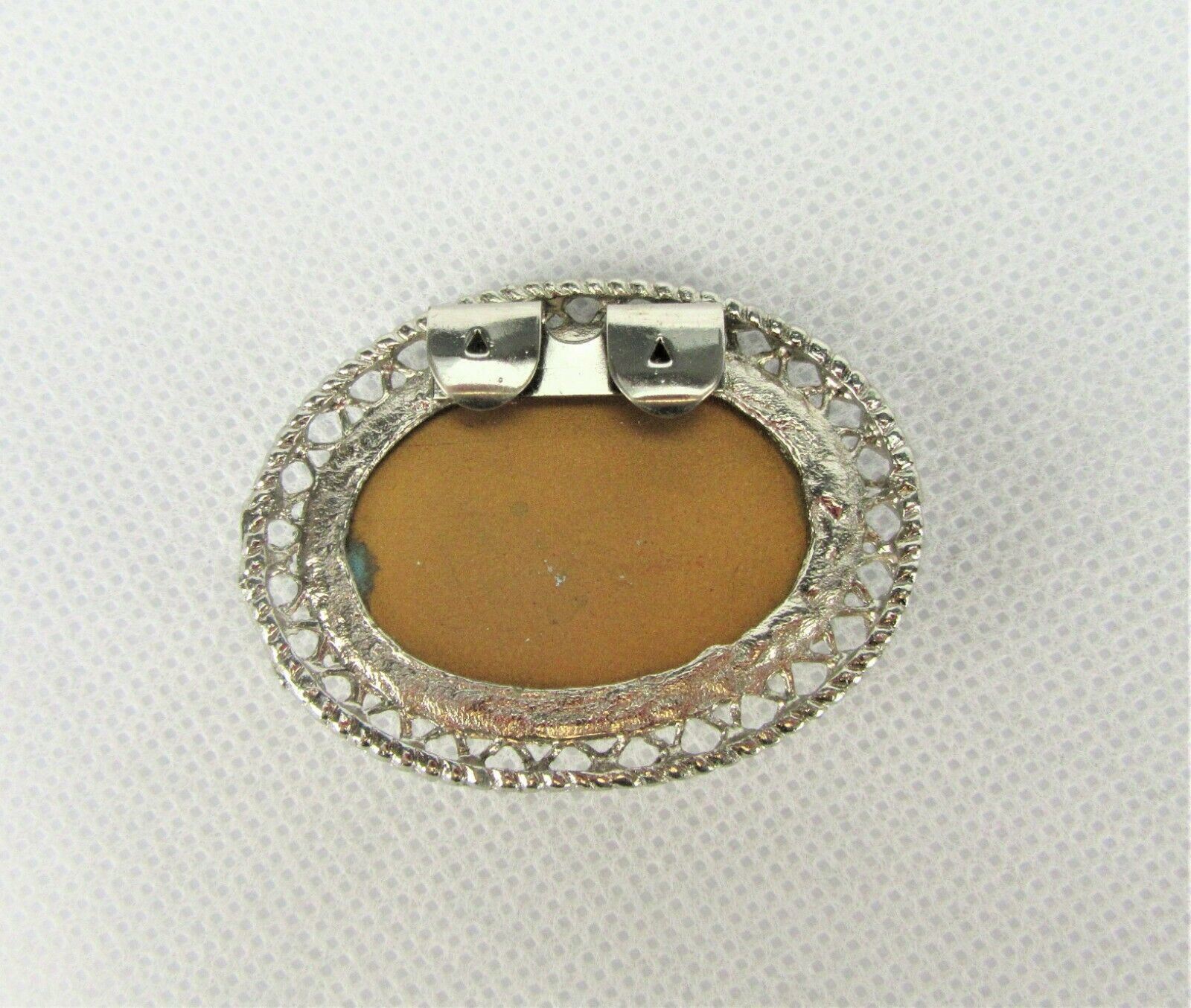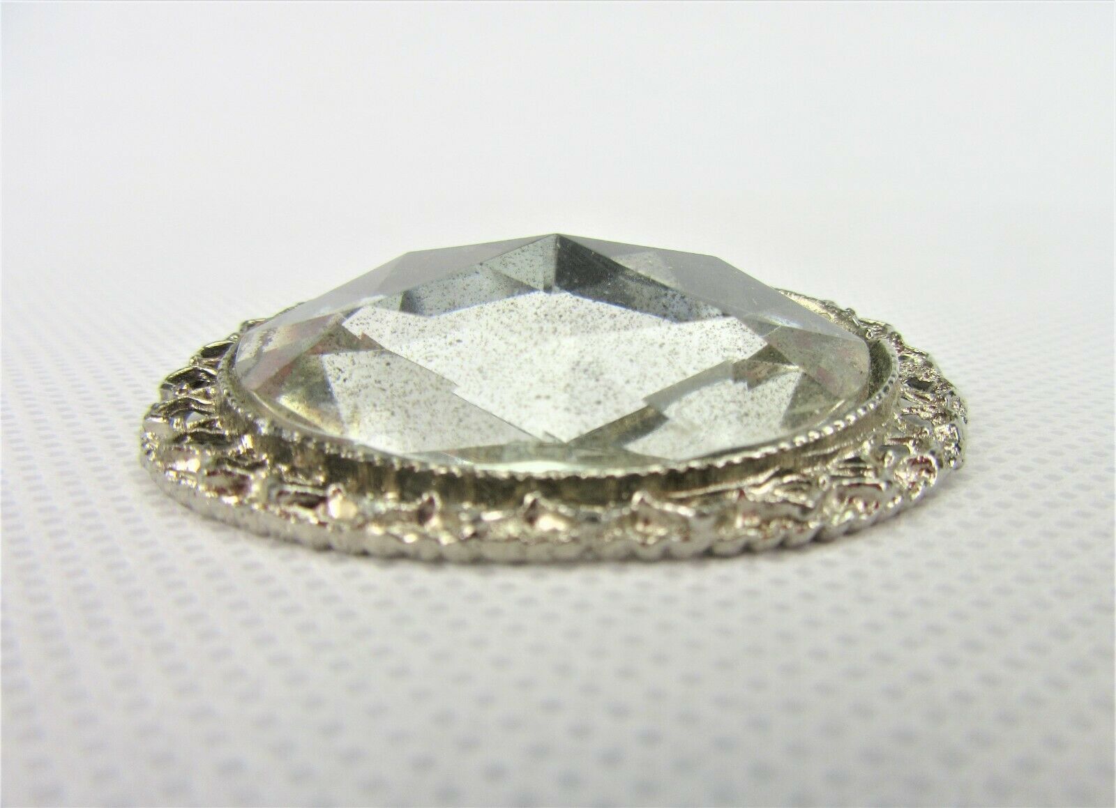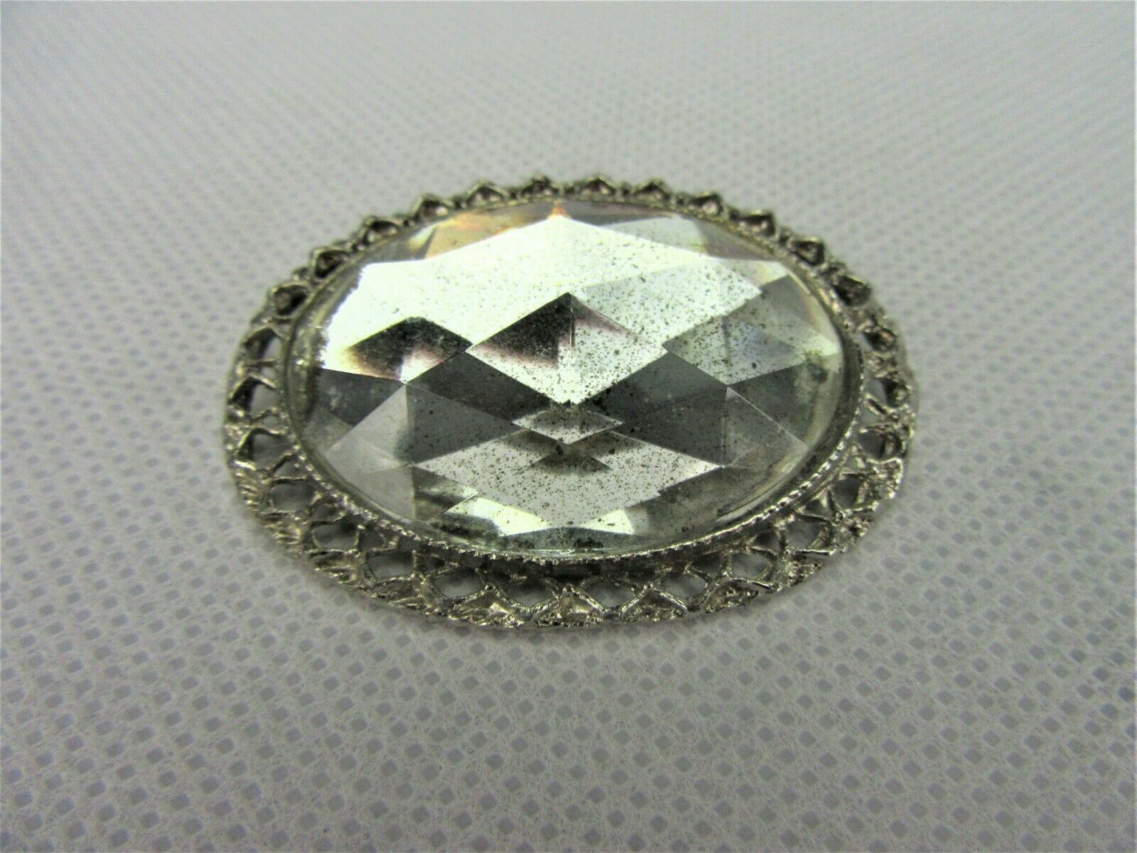 Silver Tone Filigree Setting with Large, Faceted Faux Crystal