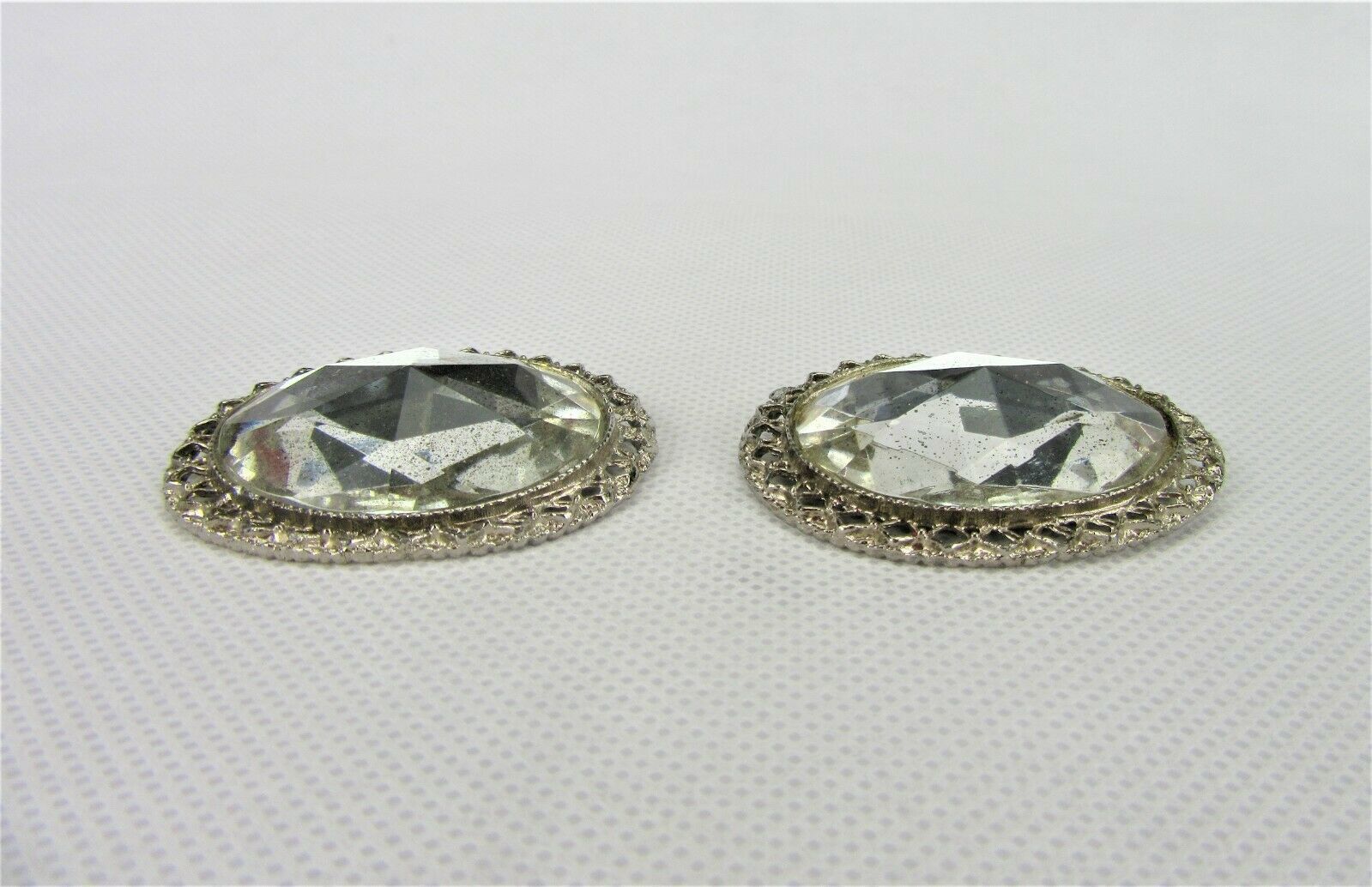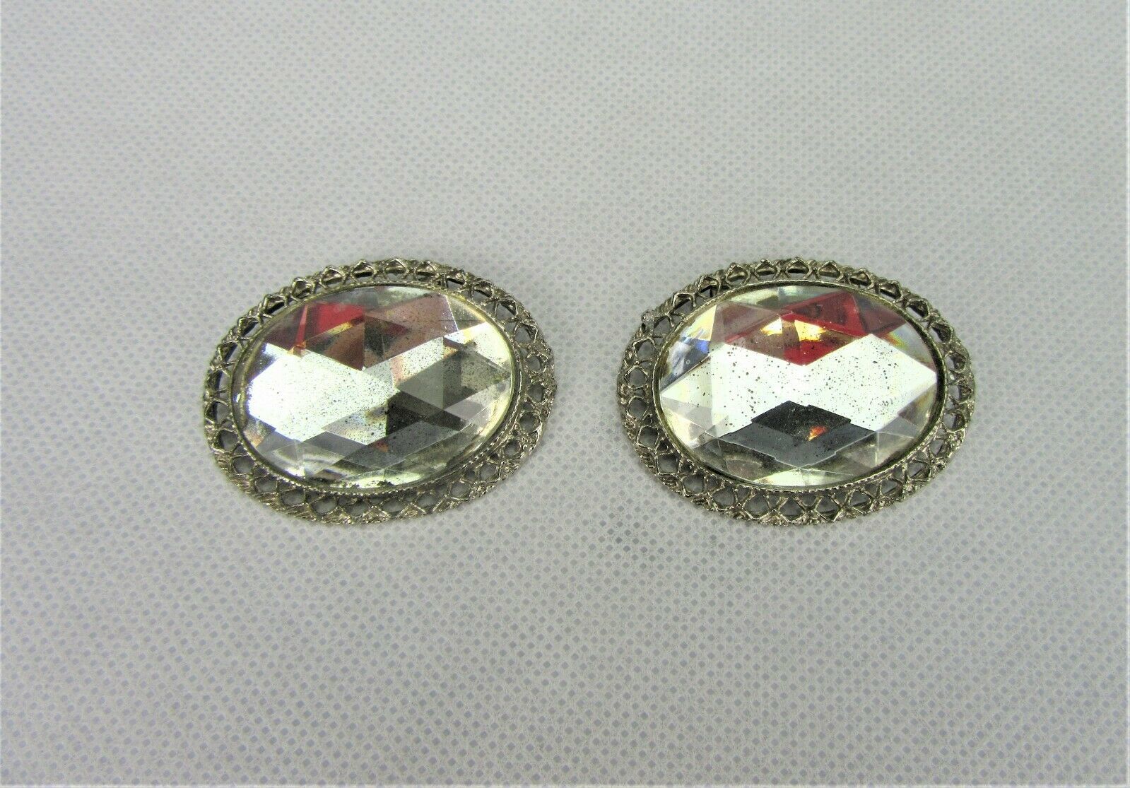 Vintage Costume Jewelry, Large, Faceted Faux Crystal Shoe Clip Pair PIN249 Vintage Costume Jewelry, Shoe Clips