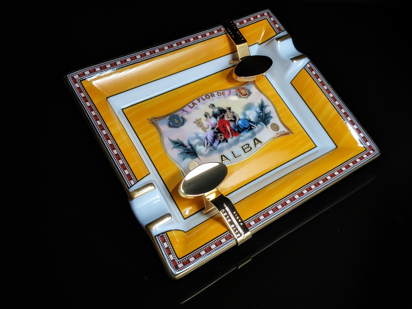 This Elie Bleu Alba Porcelain Yellow Gold Ashtray is a great addition to any cigar aficionado's collection. Made in France, it exudes elegance and sophistication. The brand, Elie Bleu, is known for their high-quality humidors and tobacco accessories. This ashtray is no exception, with its beautiful design and excellent craftsmanship.