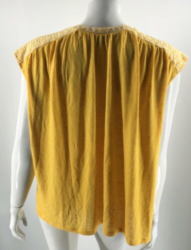 Falls Creek Top Plus Sz 1X Canary Yellow Split Neck Embroidered Shoulders Shirt