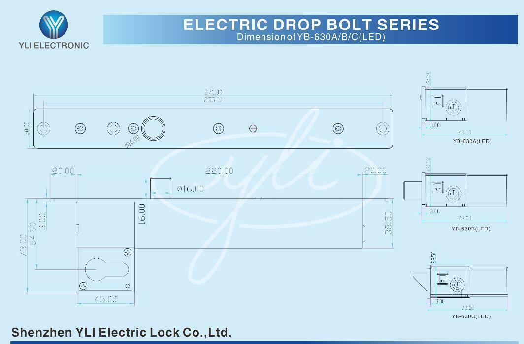YB-630B (LED) is an all-metal construction electric bolt .with European-type cylinder and has both electric control and manual control functions. Based on the all-metal linkage parts,It can work at the temperature of 60 ? or -40 ? .The CNC lathe create the 304 stainless steel Bolt, which can bear with 2000kg holding force.