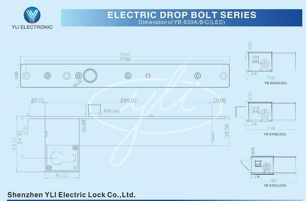 YB-630A (LED) is an all-metal construction electric bolt.with European-type cylinder and has both electric control and manual control functions. It can be worked at the temperature of 60 ? or -40 ? below zero based on the all-metal linkage parts. It works in severe temperature..The high level material of stainless steel benefit it can withstand 2000kg holding force.