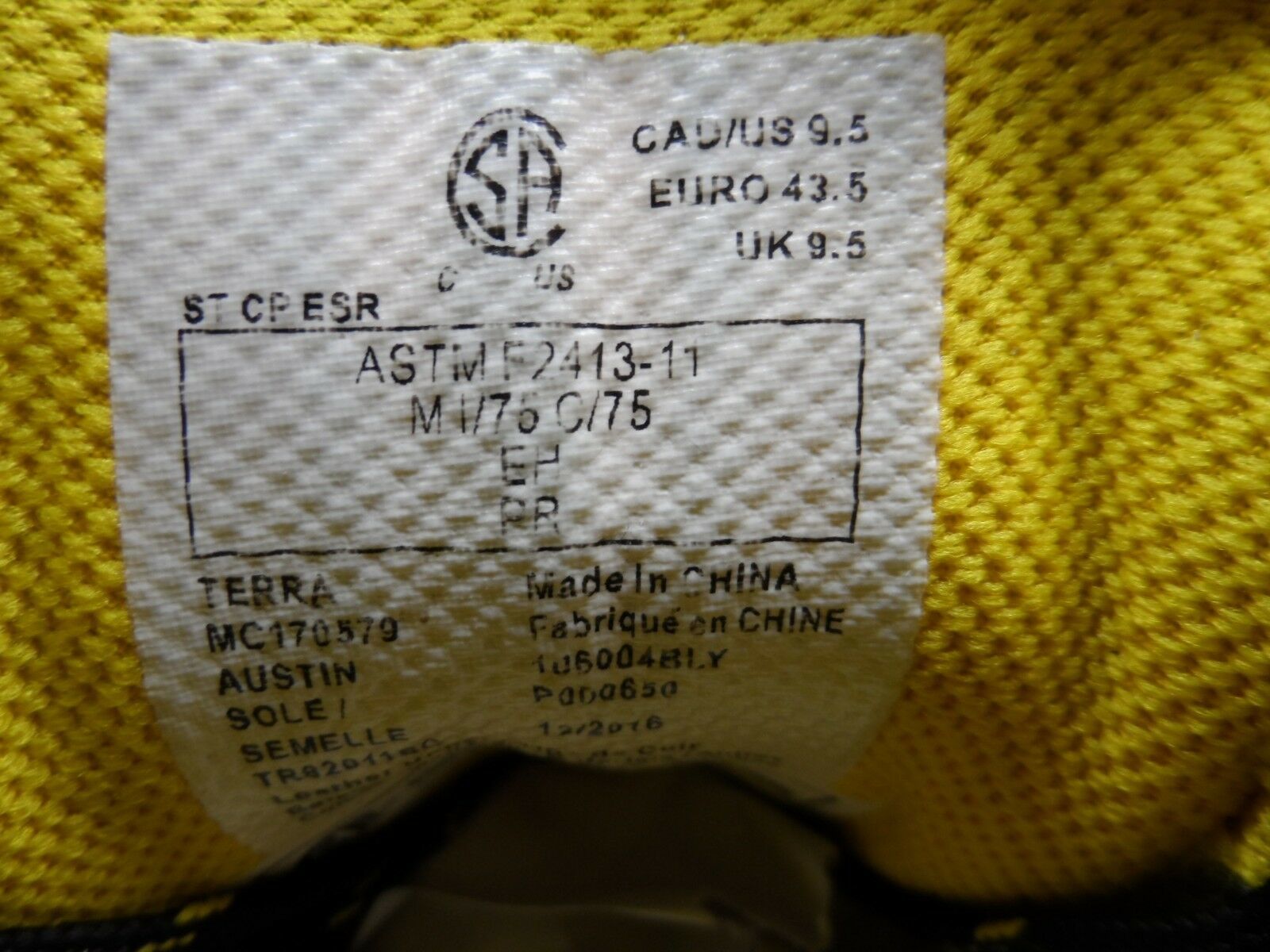 Terra Men's Austin STCP Leather Skate Style Work Shoe Black/Yellow Size 9.5M