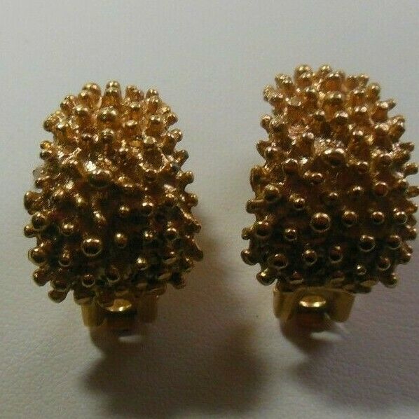 Vintage Signed Coventry Gold-tone Textured Clip-on Earrings Pat. # 2733491