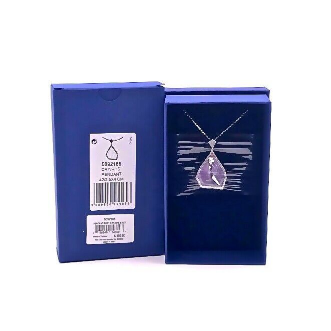 Authentic Swarovski Allure Crystal and Amethyst Gemstone Short Pendant-Rhodium