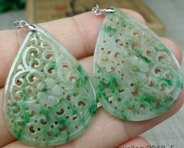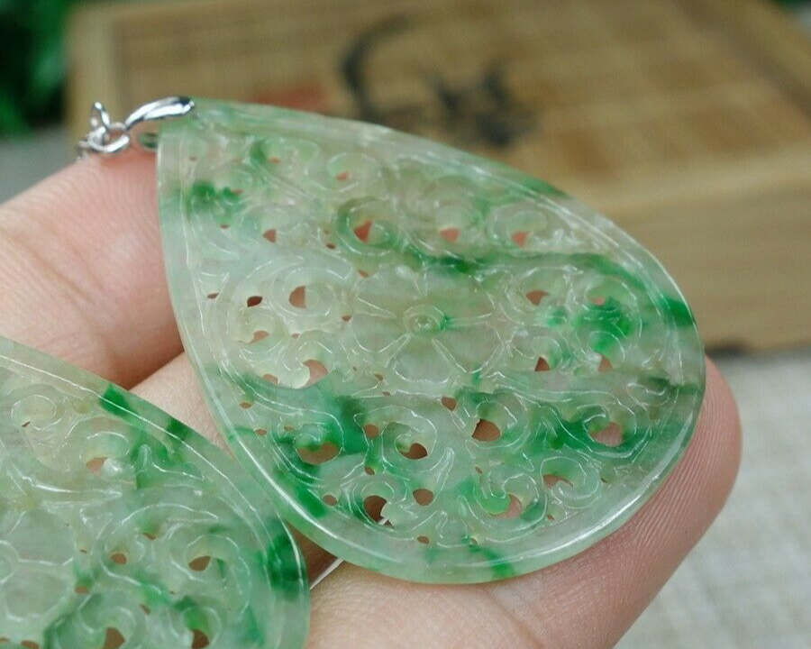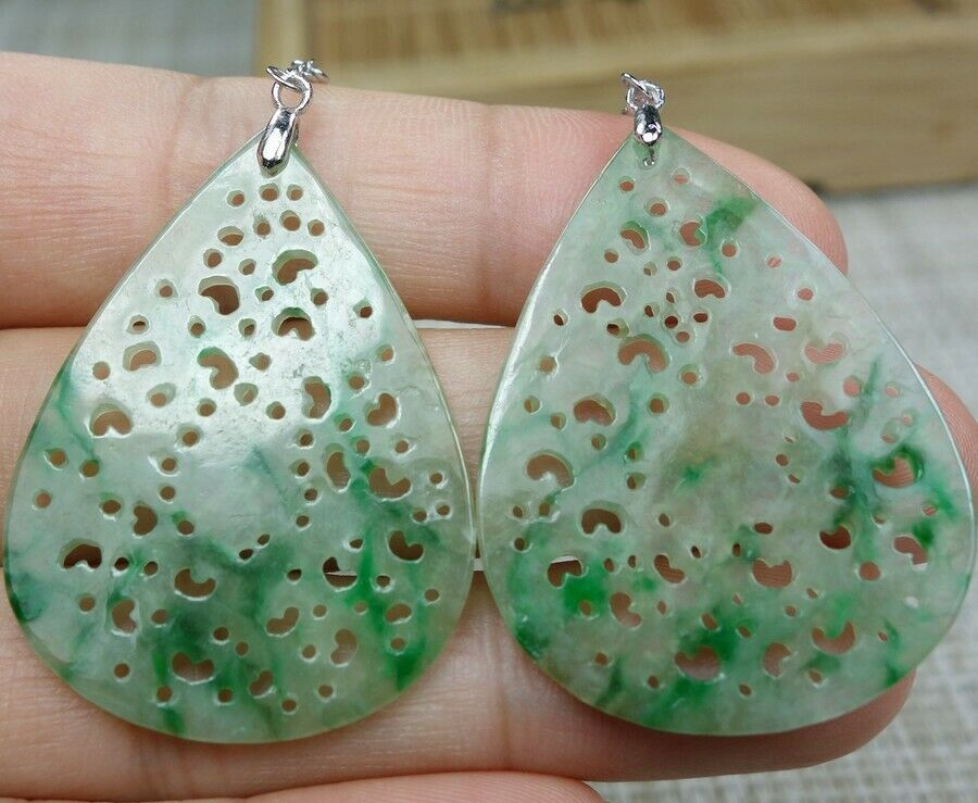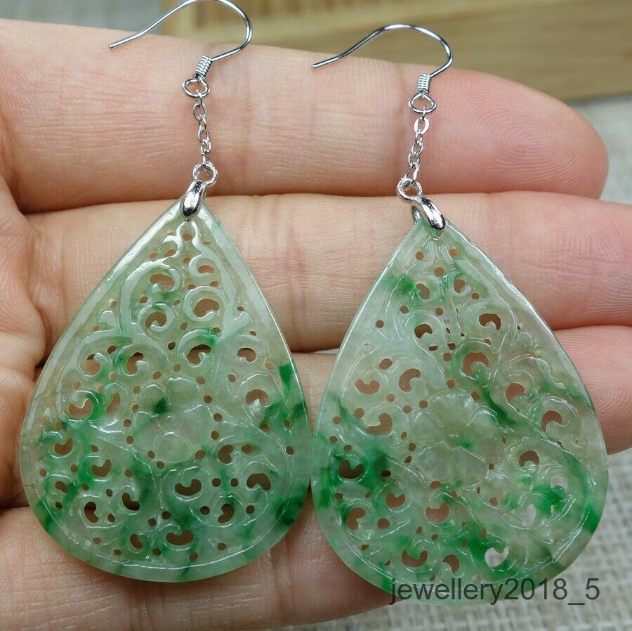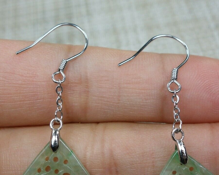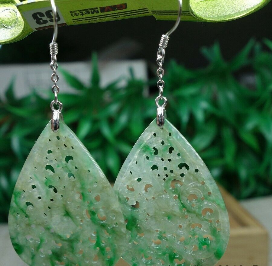 Certified Icy green 100% natural A jadeite jade Earring S925Silver 镂空雕花耳坠