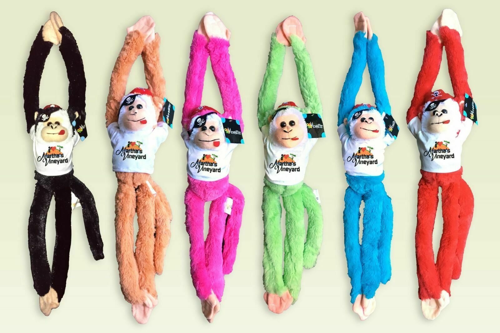 You are bidding on a set of 6 Pirate Hanging Monkeys with the pictured Tshirts. These Monkeys are Brand New with tags and retail for between $15-$20 each. We have many auctions with different states, cities, and locations available.